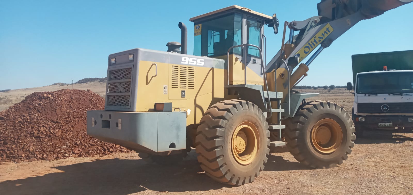 Almost new 3 cube Olifant Front End Loader tyres 90% still plastic on seats. Low hours. No use for it anymore
