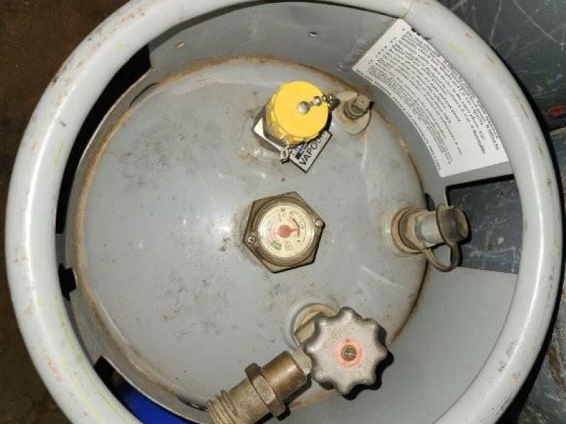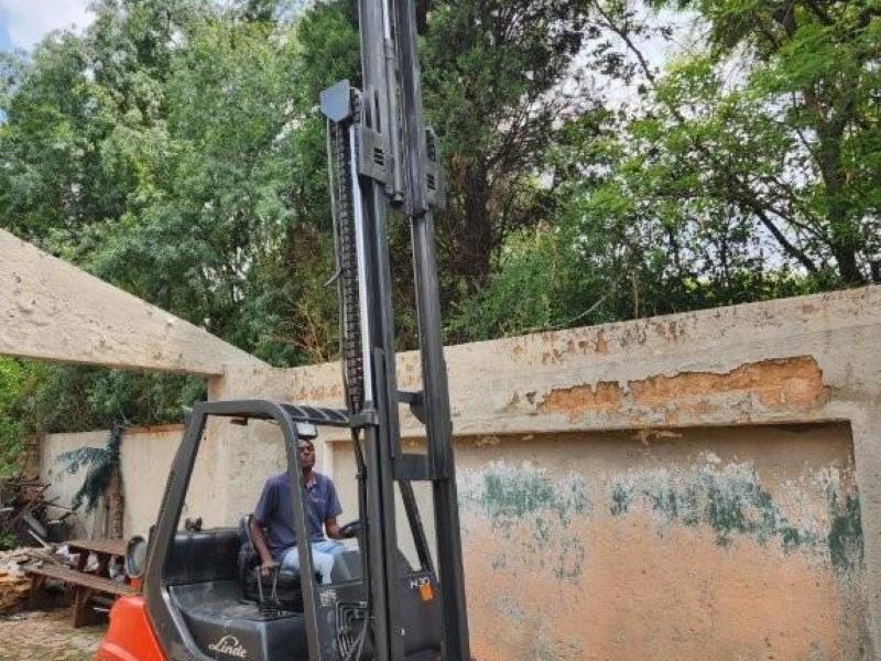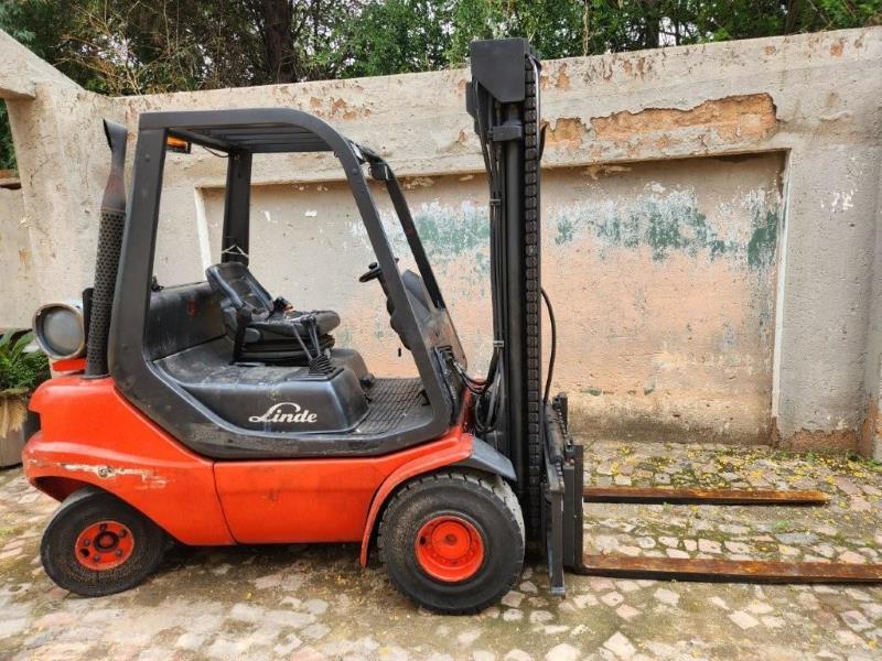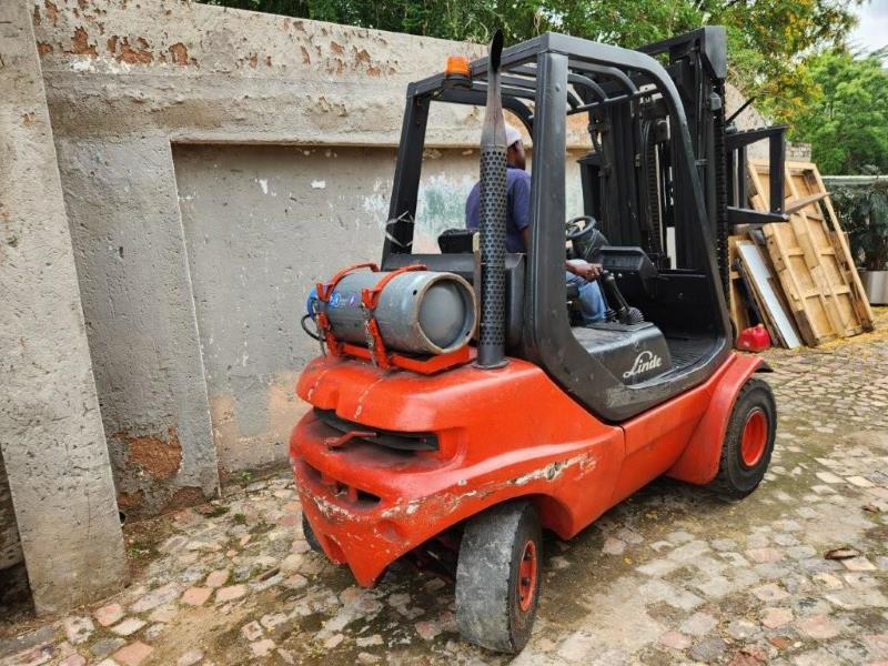 3-Stage, Solid Tyres, 1.5m forks, 1 x Linde gas cylinder plus 4 spare cylinders