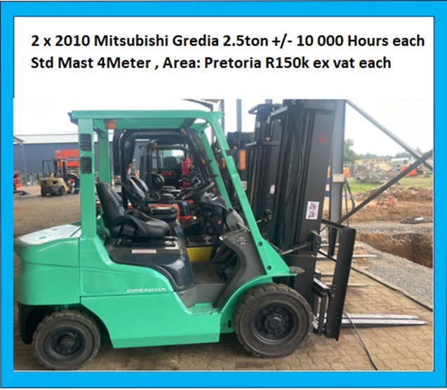Excavators, Trucks ,Side lift Trucks , Diggers , Fork lifts , Containers .