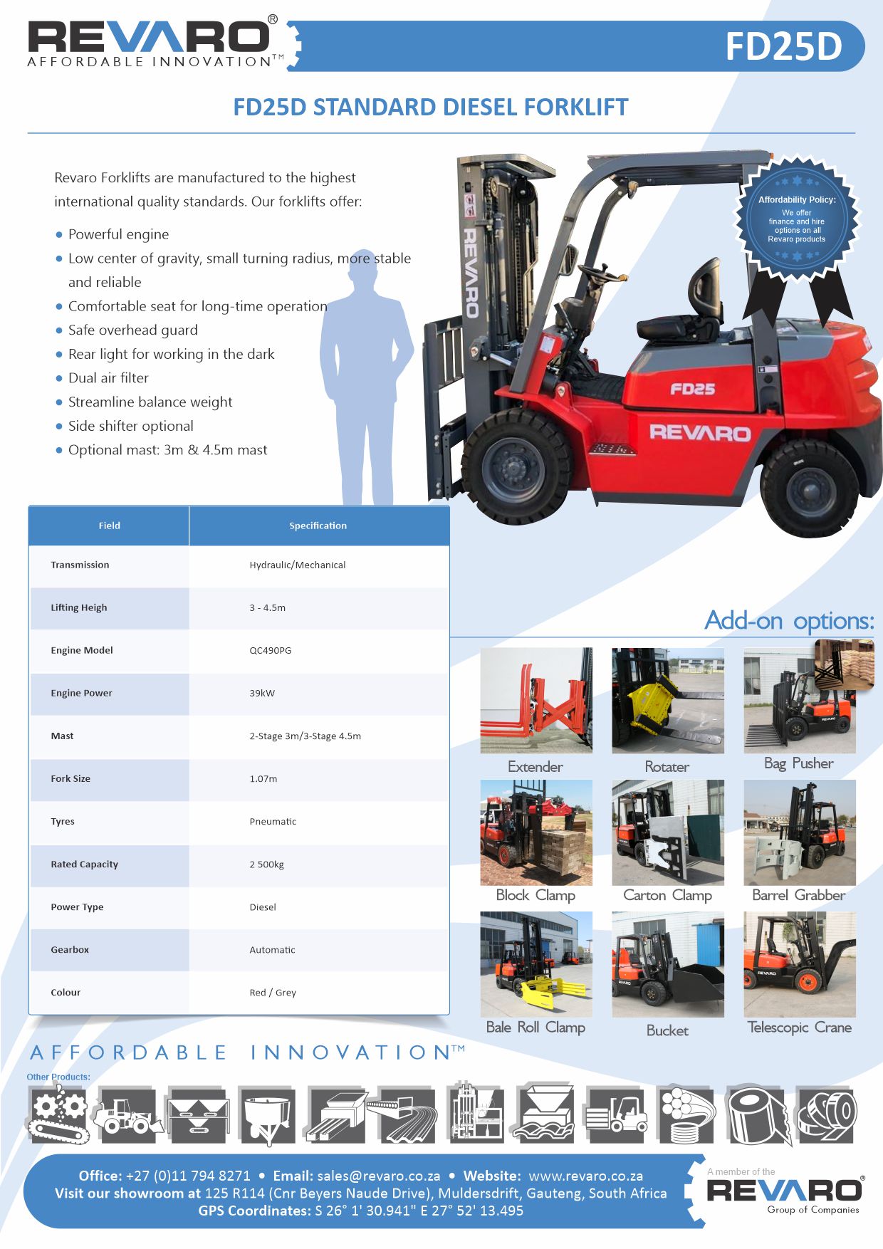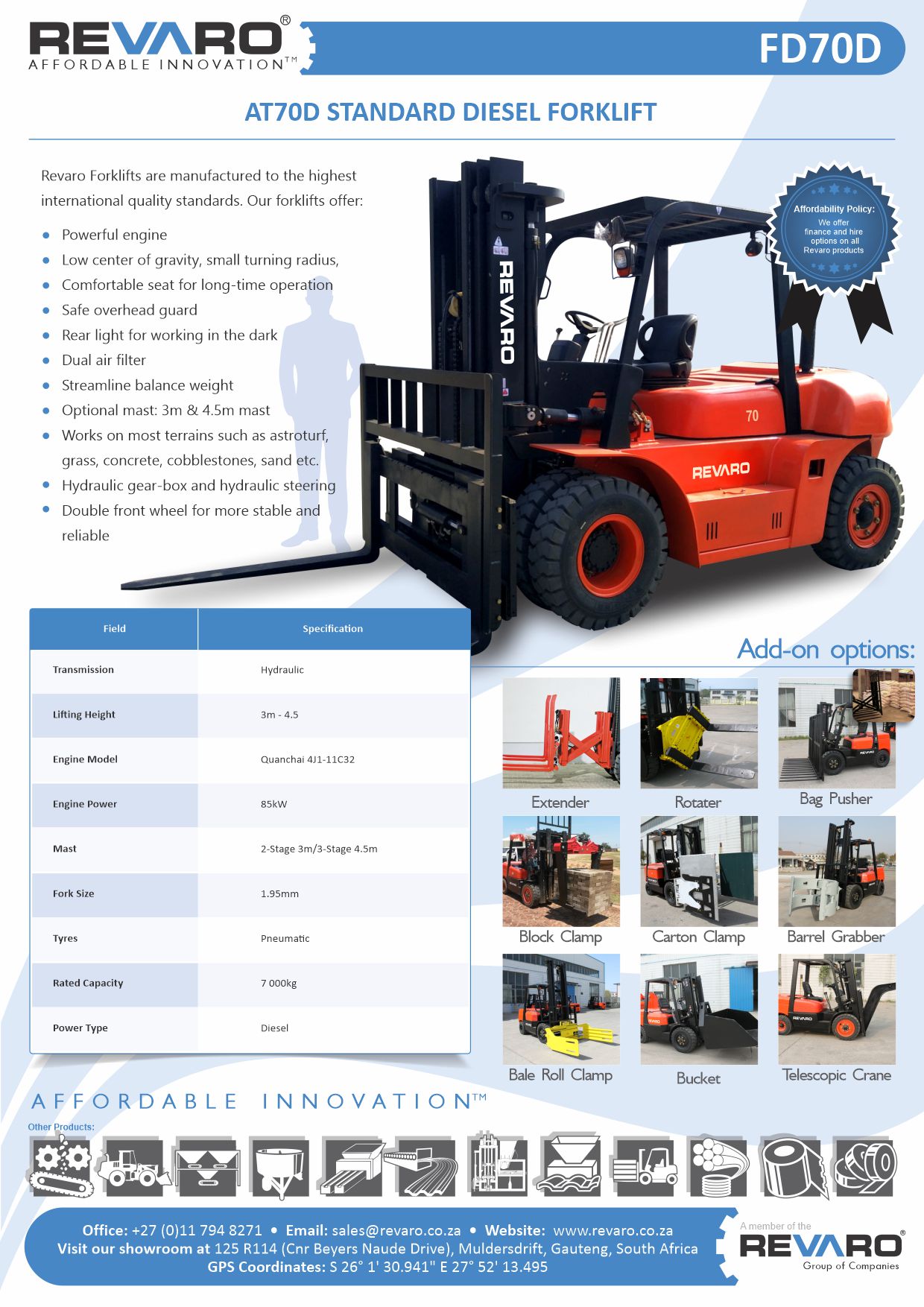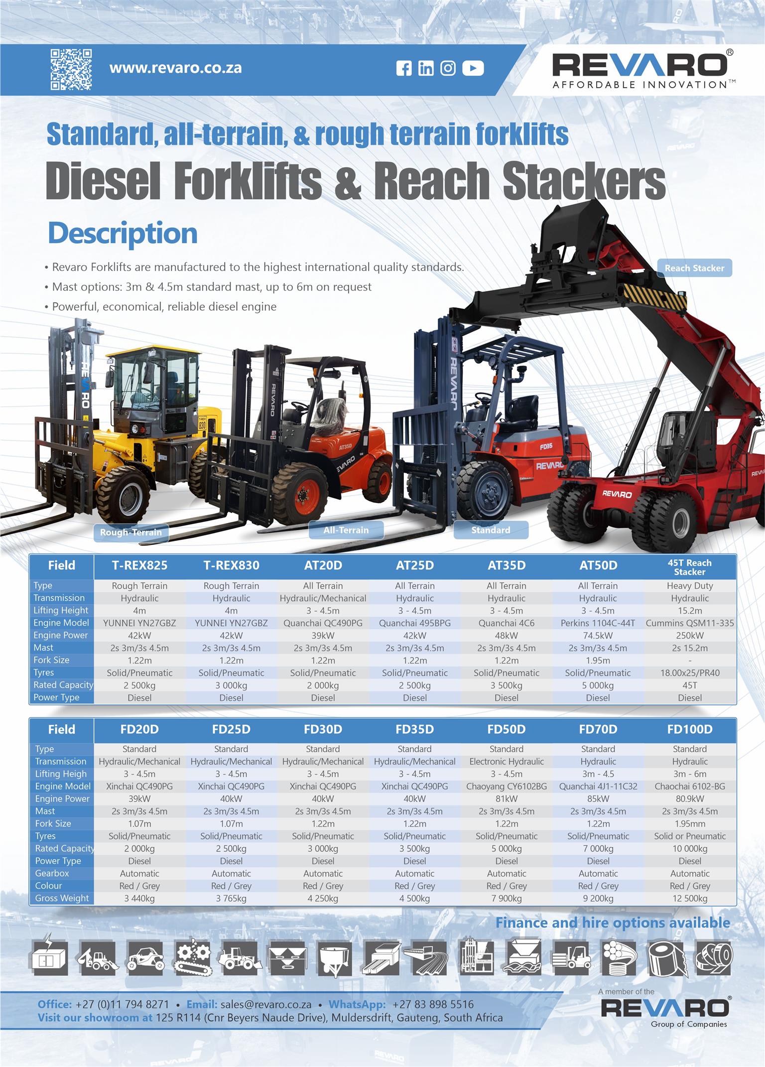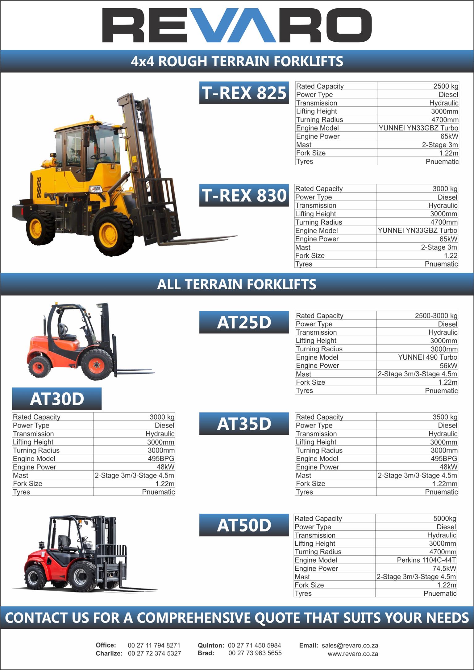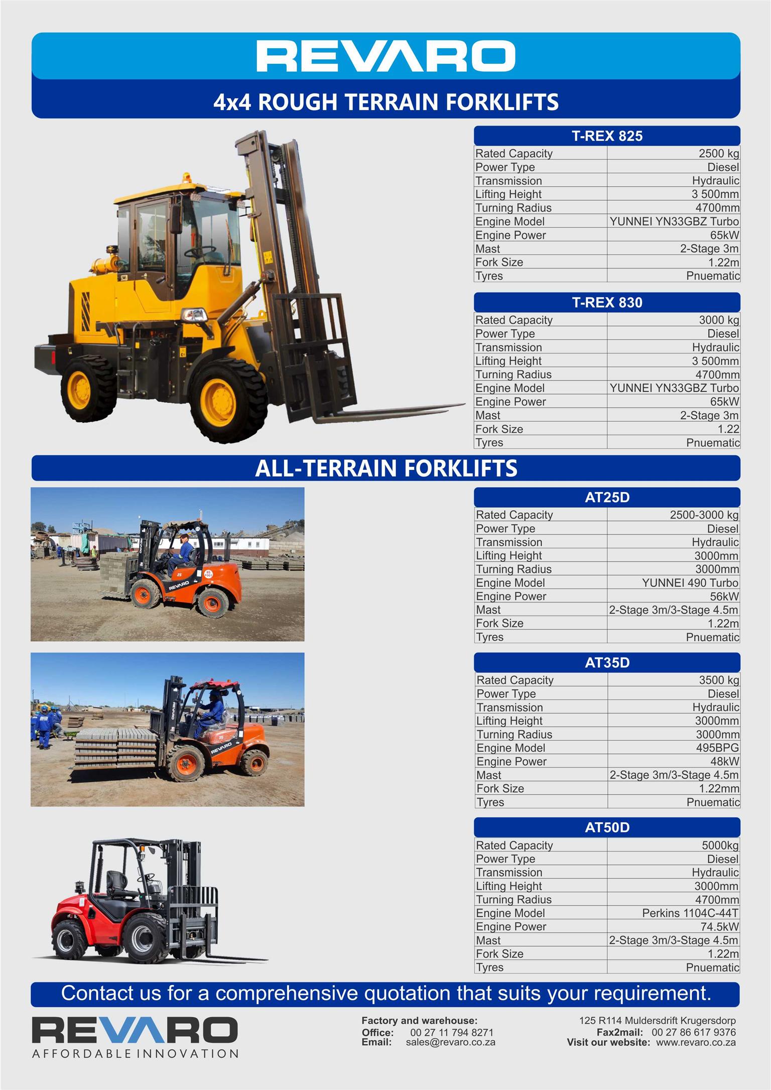 Revaro all Terrain forklifts are the way to go. Rugged go anywhere economical tough