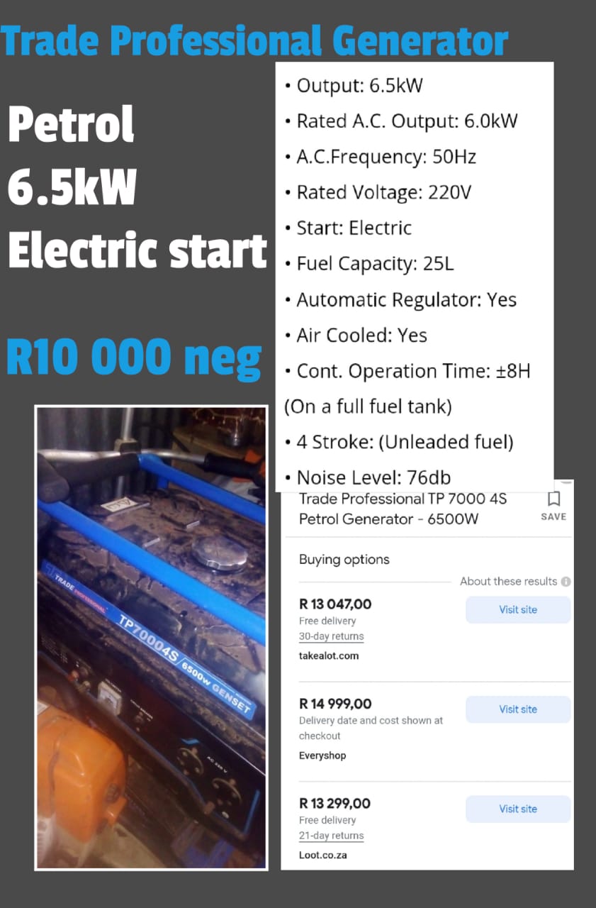 Generator TP70004S / 6.5kw Electric Start. Its in Exellent Condition