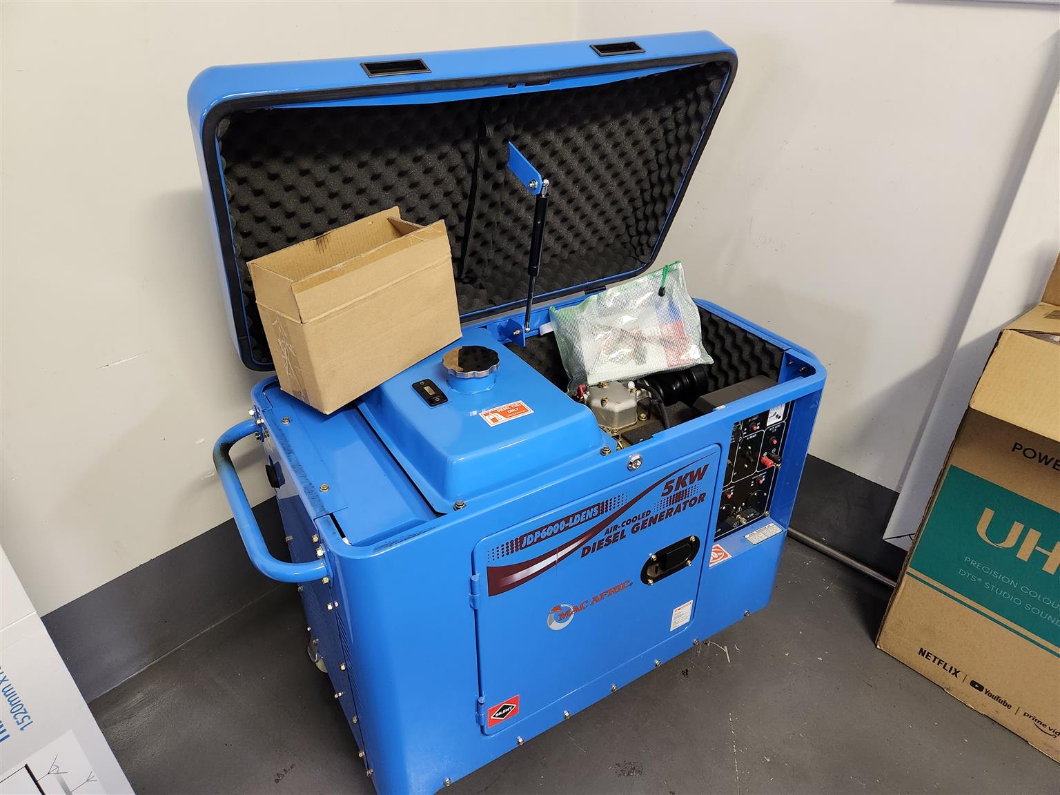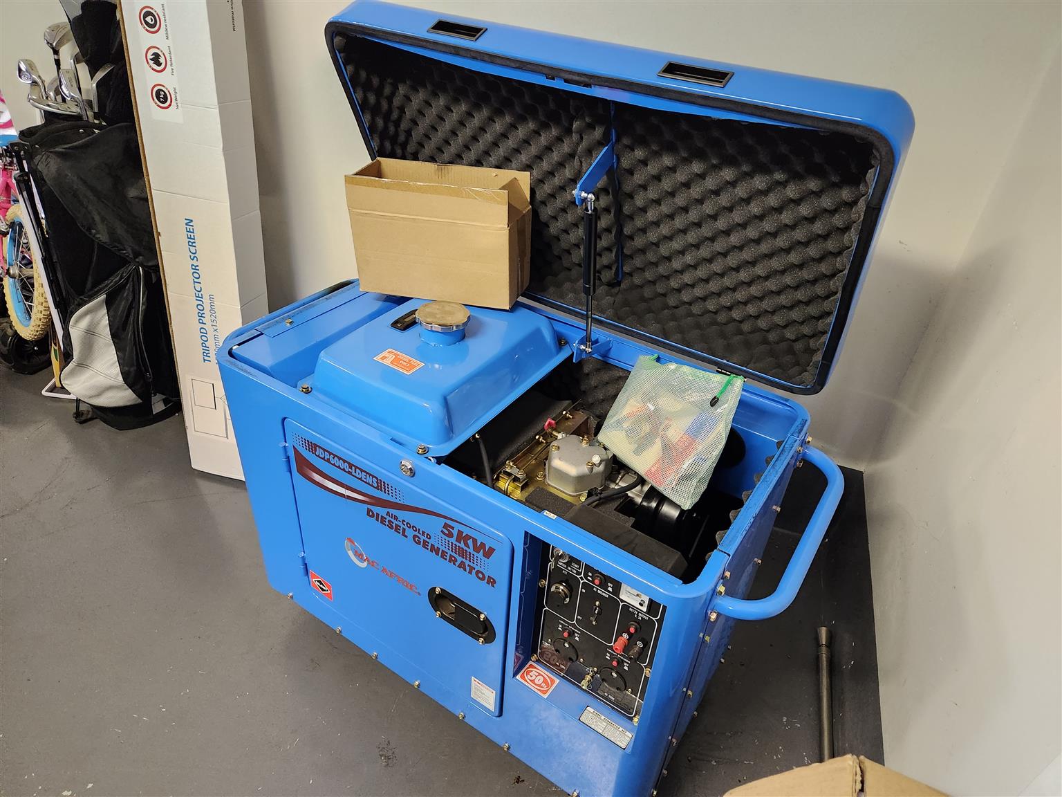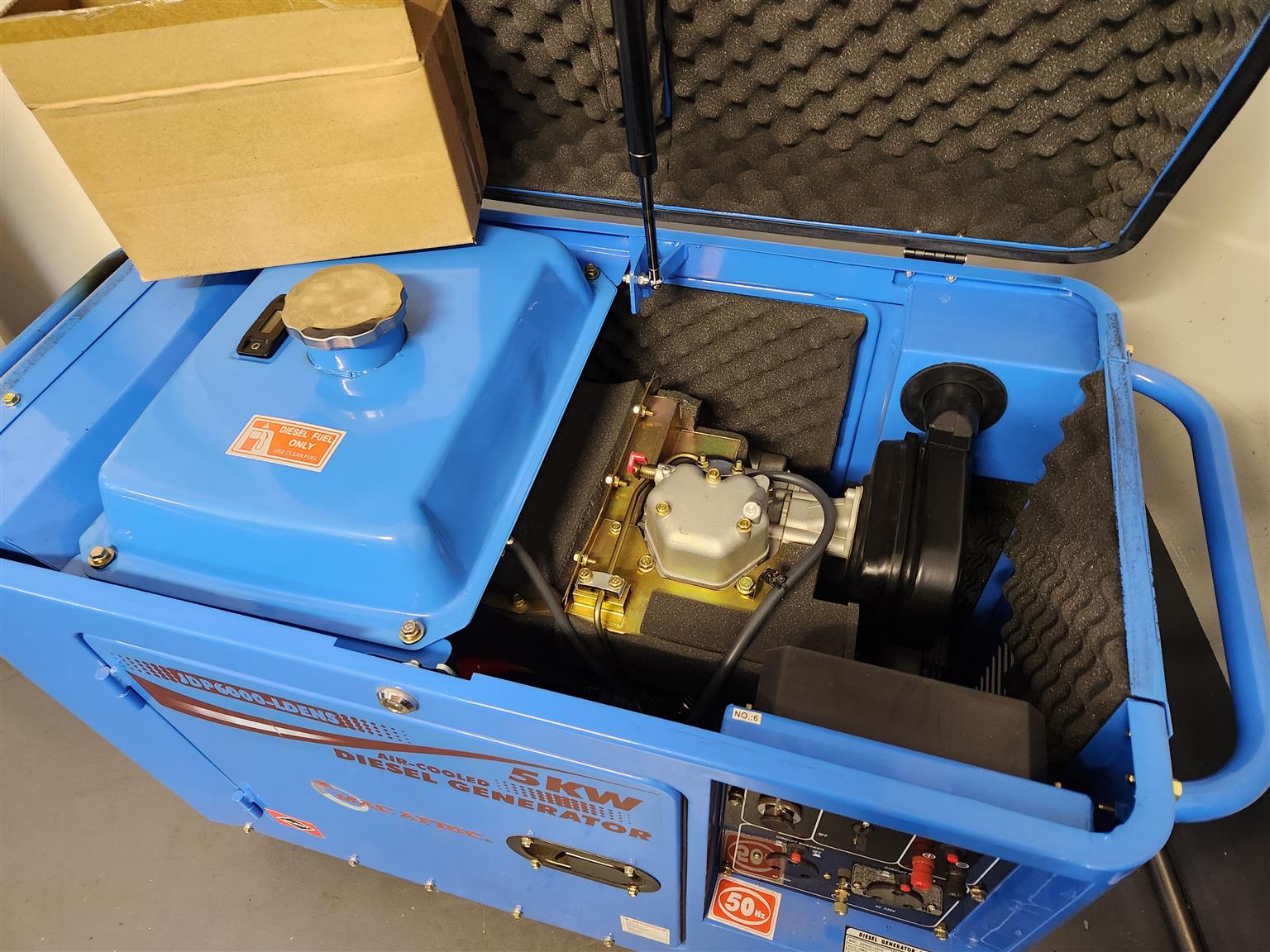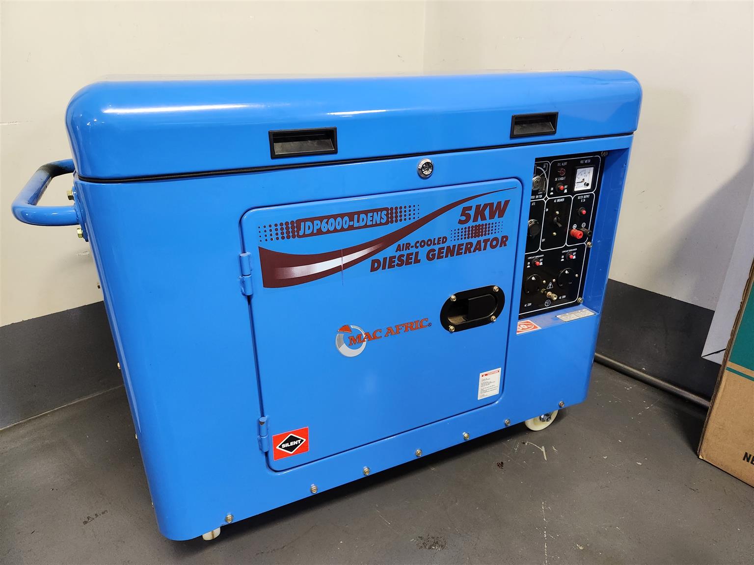 5 KW diesel silent generator with an ekstra service kit and all books and tools. The generator ran twice before they installed our big generator as it was just a temporary solution. We are moving and getting rid of all our extra stuff and that is the only reason for selling.