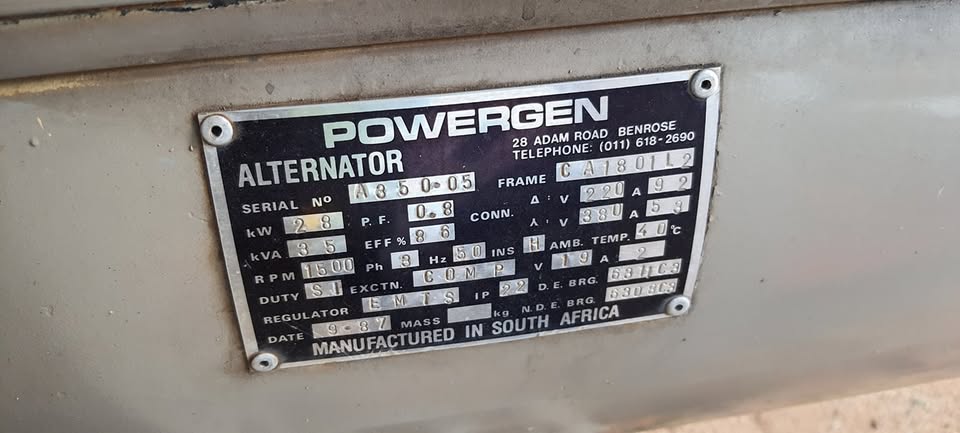35 kva generator. Cummins BT4 Diesel. 220/380 volts. Ready to work. Lloyd Bronkhorstspruit