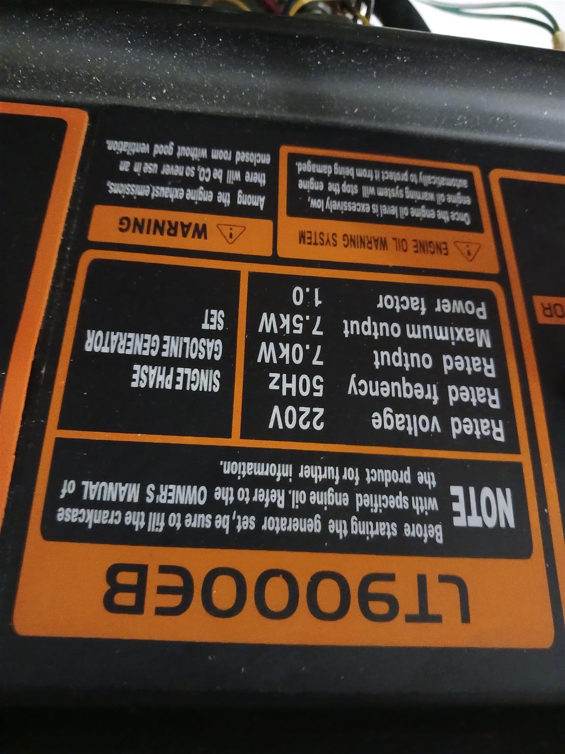 10 KVA Lutian Generator. Good condition. Reason for selling: No longer required. Moved to retirement village