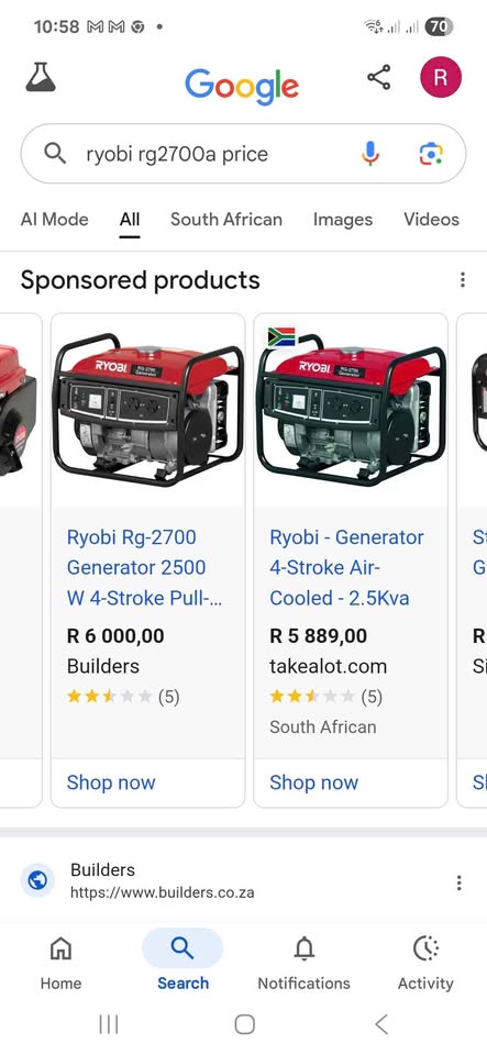 Great condition Ryobi RG 2700 A Generator for sale. Only R2999. Please contact Renier . Rooihuiskraal North Centurion Pretoria