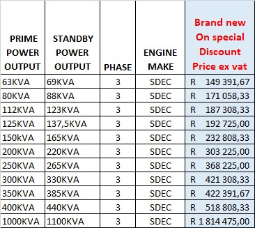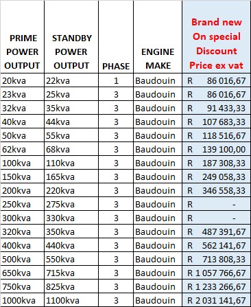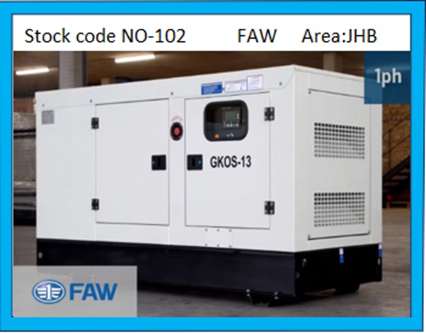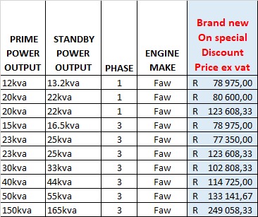 12kva FAW Generator with ATS R85,500 ex vat Stock 12kva up to 150 kva 3 Phase, All on special .