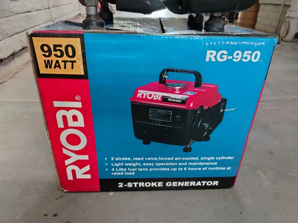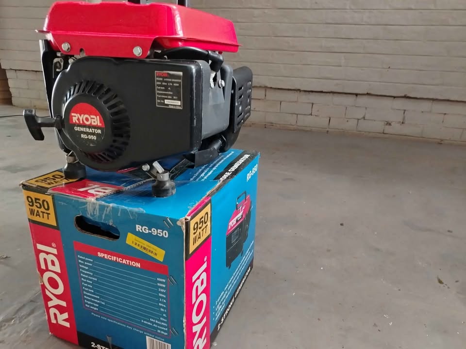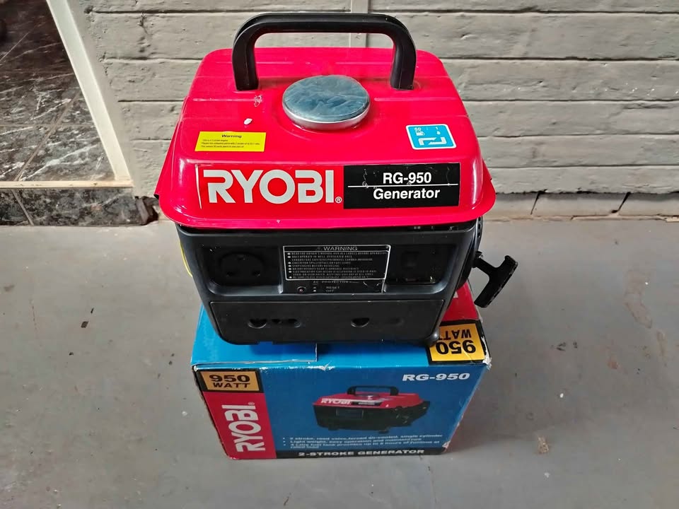 Ryobi 950w Generator. Still new, hardly used! In need of service as it has not been started in a few weeks. Can power small household appliances during loadshedding and power outages.