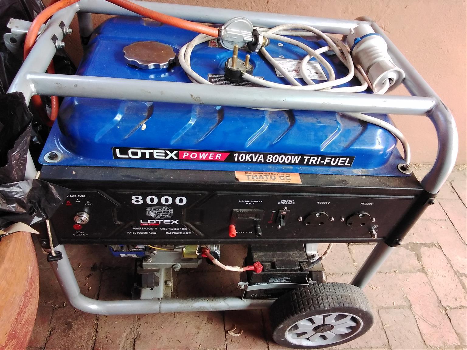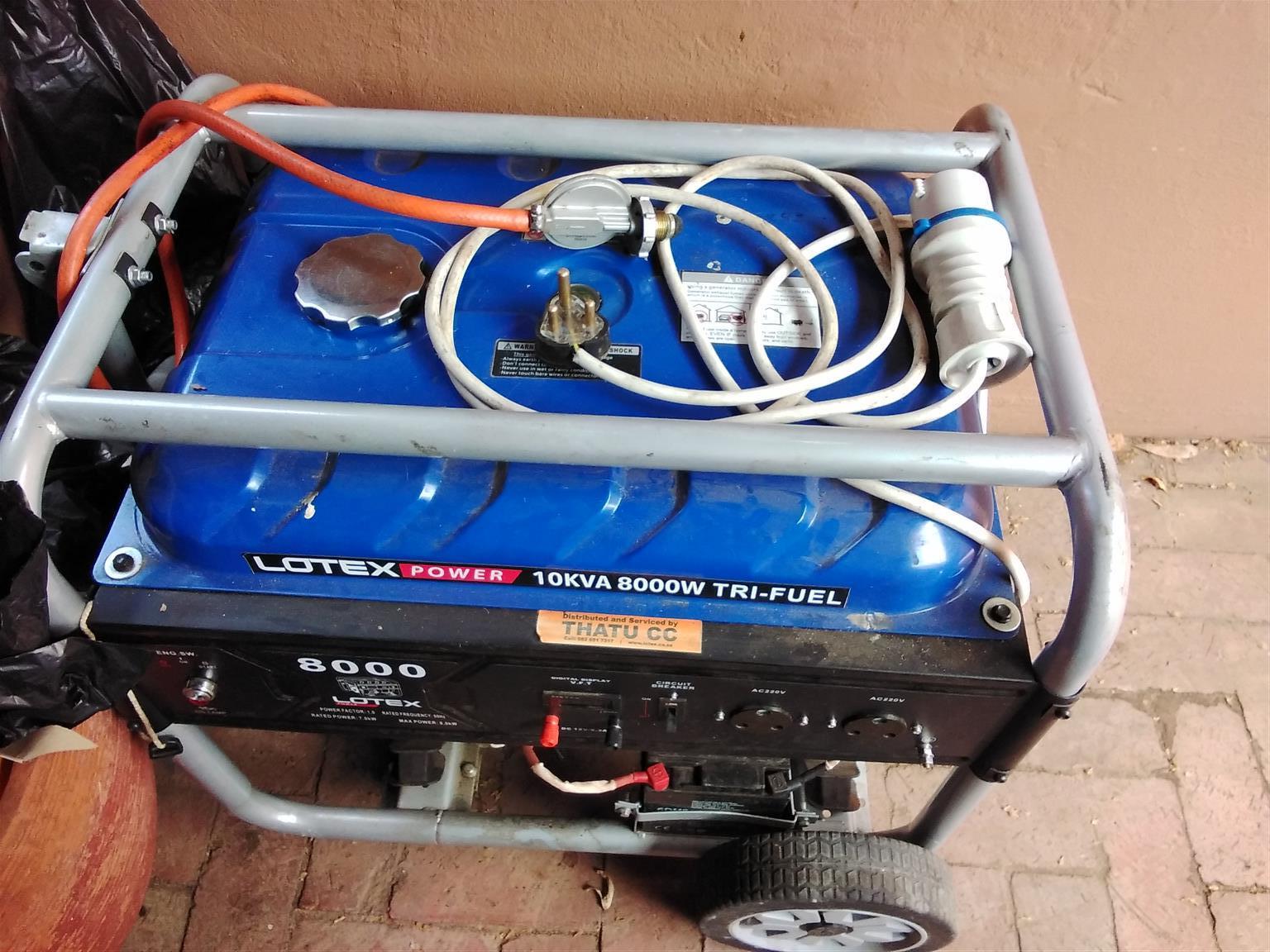 Lotex Generator 8000kwa daul gas and petrol generator very good condition . More details:
