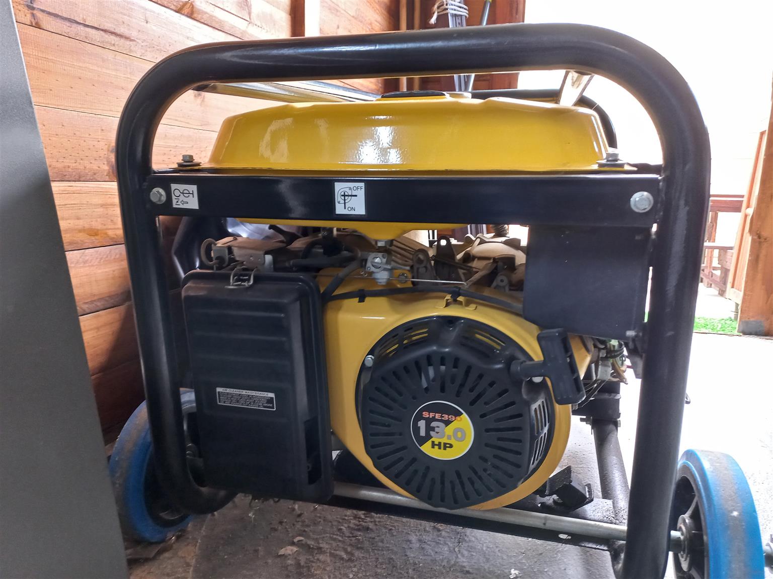 5.5kVA PETROL GENERATOR. VERY GOOD CONDITION. RUNS SMOOTHLY, POWER ENGINE. HAS WHEELS TO MOVE AROUND
