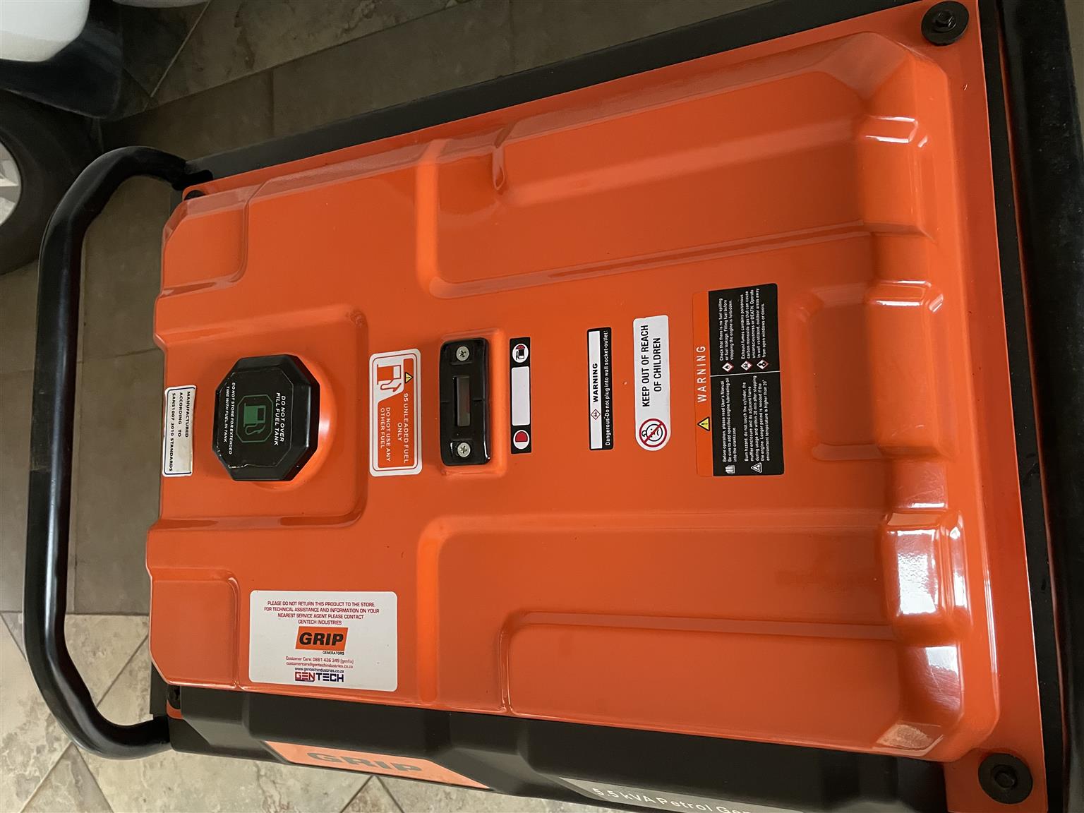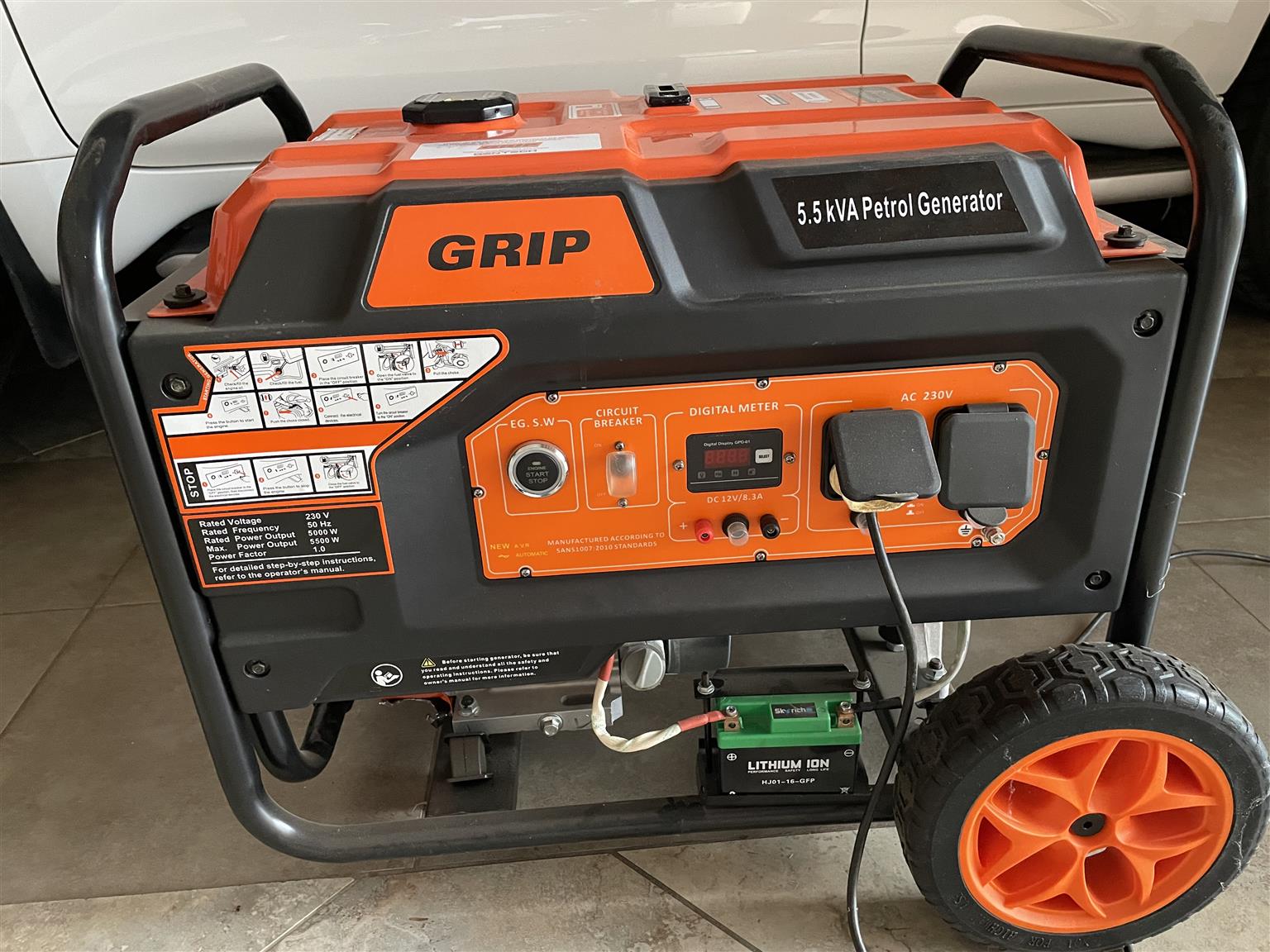 5,5 KVA GRIP petrol generator as new and filled with 95 Octane petrol