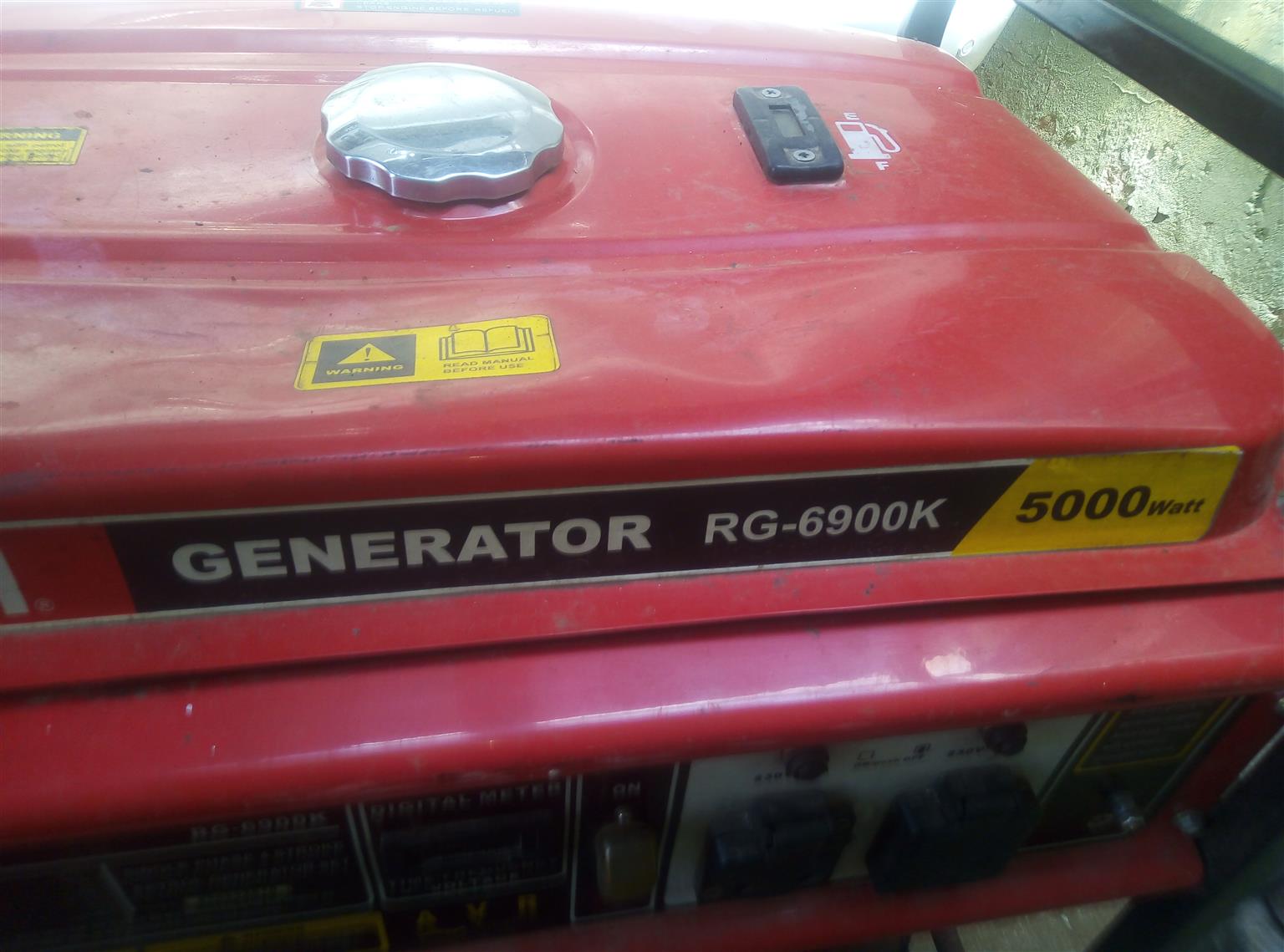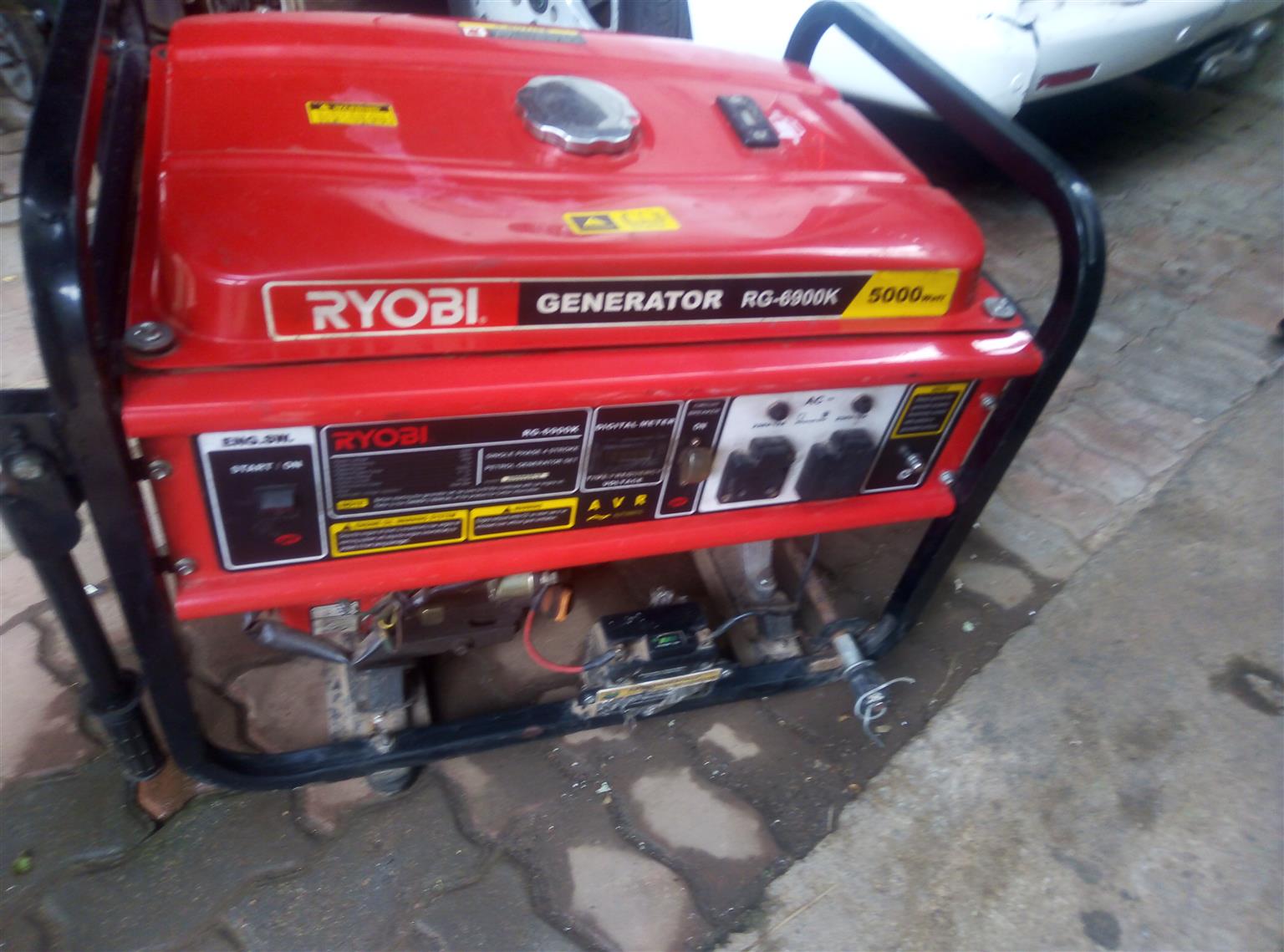 Generator for sale.Ryobi RG6900k 5000wats. Used, missing 1 wheel, runs perfectly.