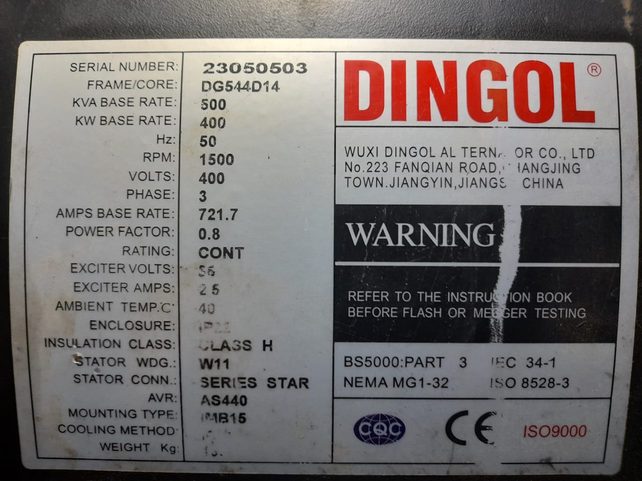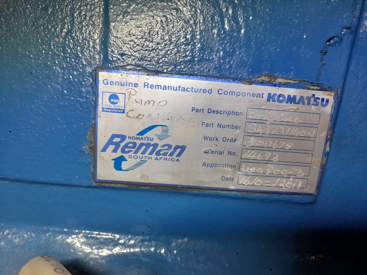 500kva Komatsu 12 cylinder. 800lt diesel tank. New alternator, refurbished Engine. Panel start.