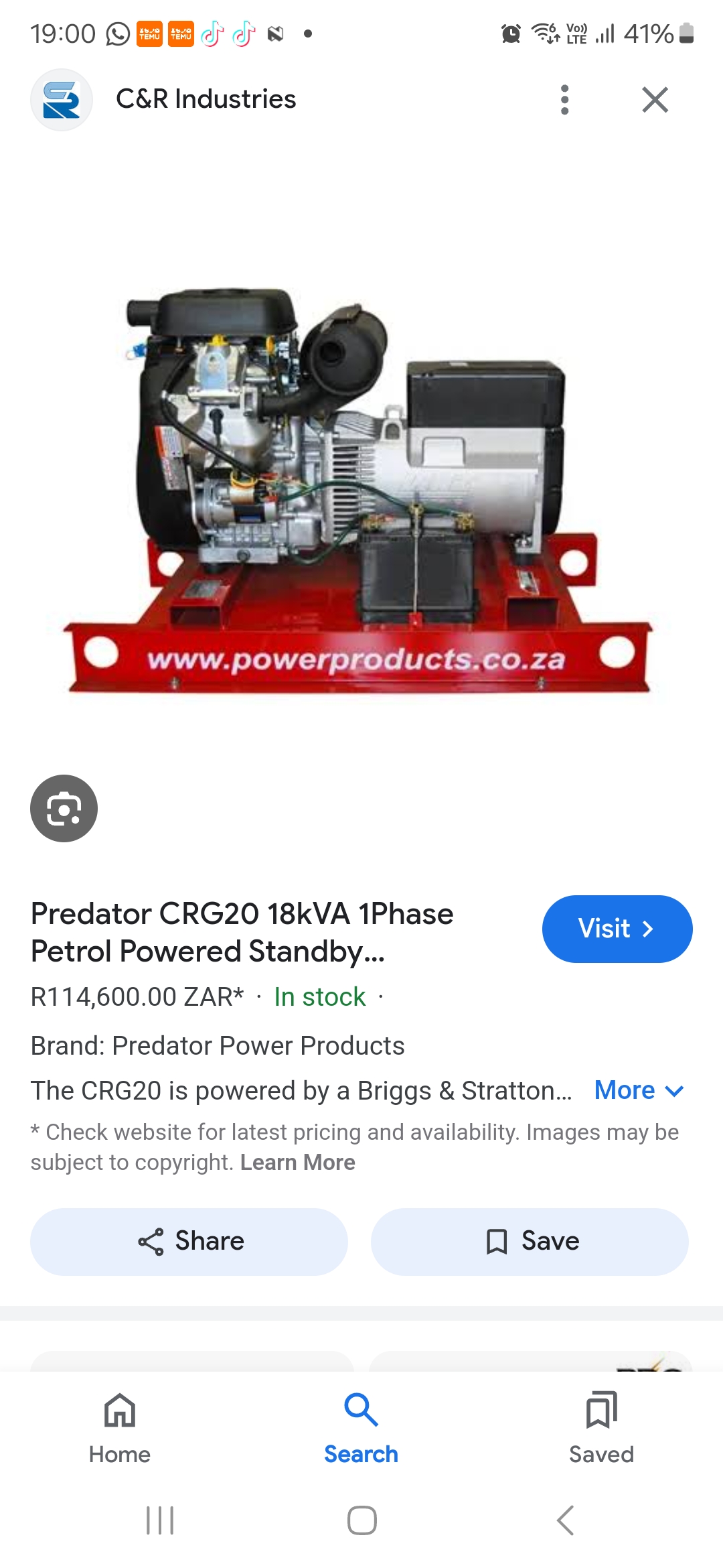 22kva 3 phase petrol generator. Works 100%. New they will.cost more that a R 100 000. Bargin at R 22 000
