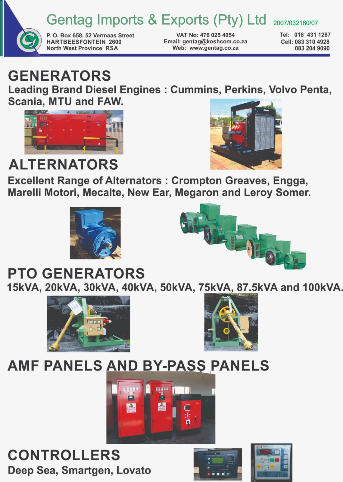 We supply all type of Generators, Alternators, PTO Generators, AMF Panels, Stand-By Panels and Controllers.