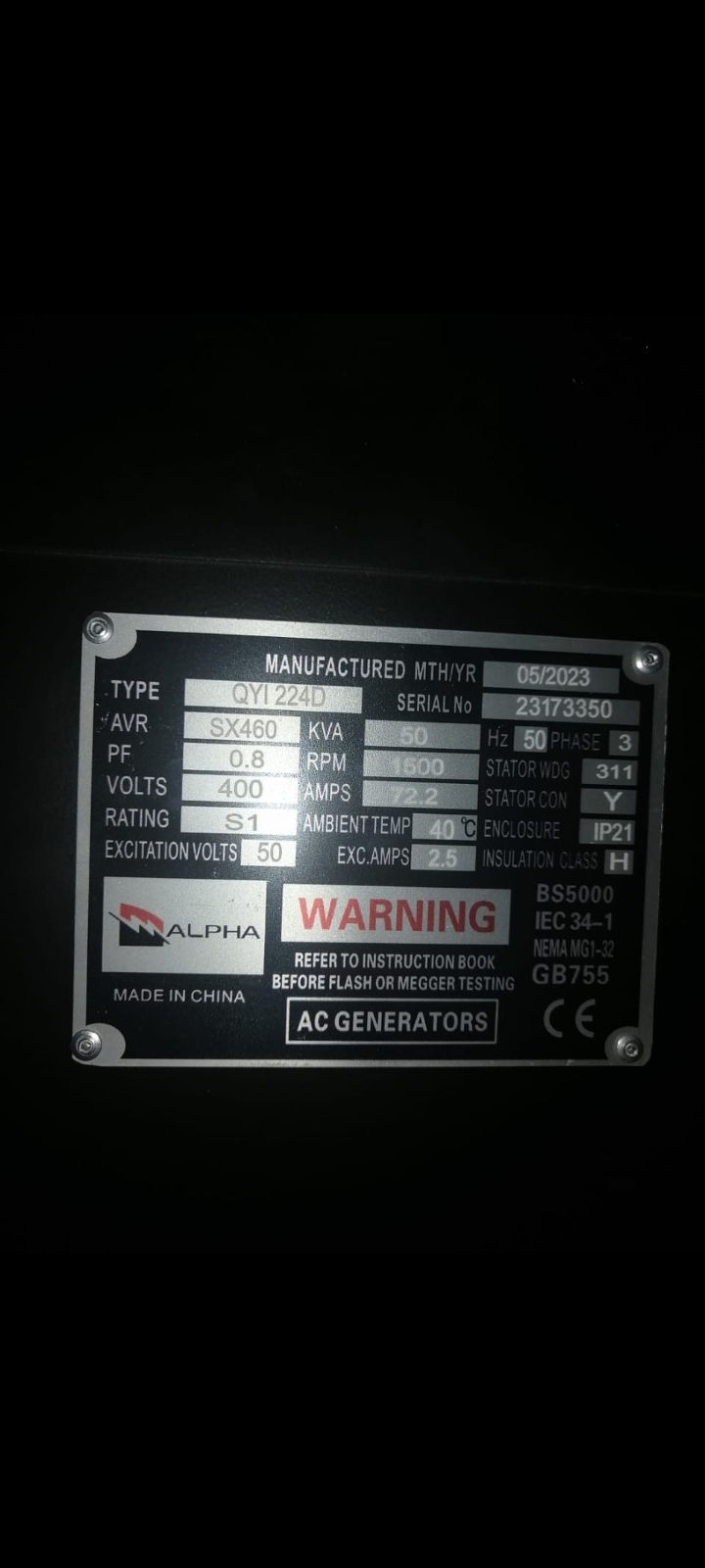 New Alpha altenator. Controll box with smartgen controller available to buy