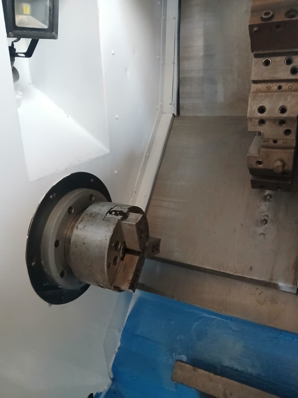 Johnford TC-20 CNC lathe for sale. Has 8 inch chuck. 420mm swing over the bed. 521mm turning length. 51mm bar size. 12 tool stations. Comes with Fanuc OTC. In neat condition. See it also on https://machinemarketsa.co.za/wp/category/engineering/