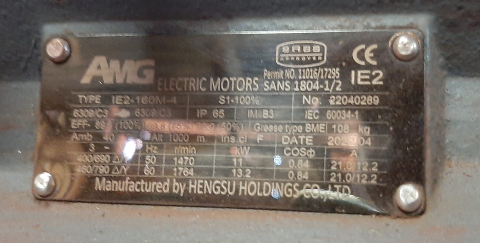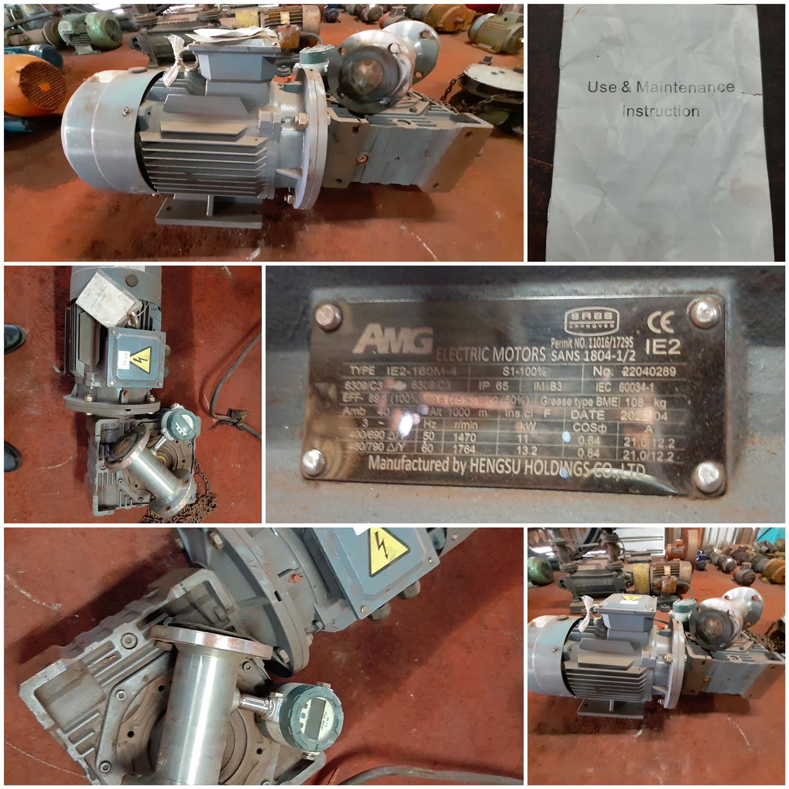 11Kw motor and gearbox IE2-160M-4 1470rpm - 176rpm 11Kw - 13.2Kw 2022/04 Hardly used . With flowmeter.