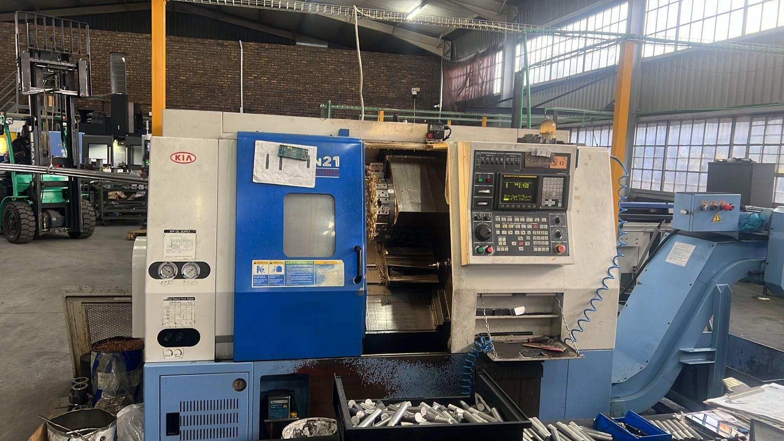 Kia Super Turn 21 CNC lathe for sale. Has 8 inch chuck. Fanuc Oi -TB operating system. Has Chip conveyor as well as tail stock. See it also on https://machinemarketsa.co.za/wp/category/engineering/