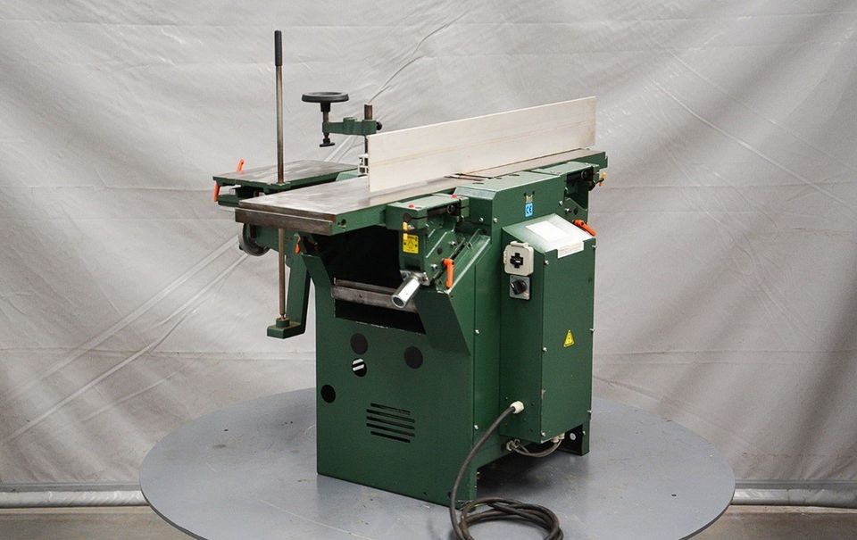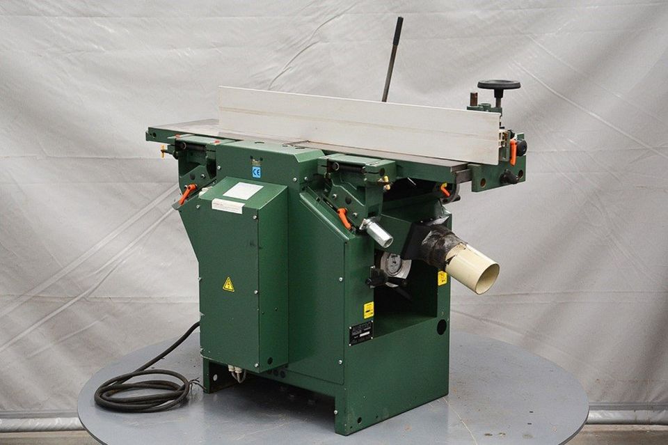Pre-owned machine sold fully checked, serviced and in excellent working condition 3 month quality guarantee as per our T’s and C’s. Planer Planing width 304 mm Planing thickness, min.-max. 220 mm Total length of worktables 1350 mm (2350) Number of cutters 2 (4) Arbor speed 4700 /min Max. chip removal 5 mm Feed speed 6,5 m/min Electrical equipment Number of motors 3 Motor power 2,2 kW (3 PS) Optional motor power 3 kW (4 PS) Drill Two-jaw chuck 0 - 16 mm Slotting length max. 200 mm Drilling depth max. 110 mm Adjustable drilling height Dimensions and weights Total height 883 mm Transport width minimum 600 mm Net weight 320 kg Gross weight 380 kg Packing dimensions Length 1470 mm Width 1160 mm Height 1520 mm