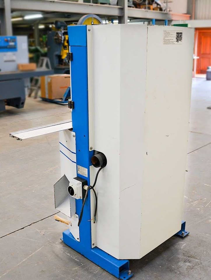 High quality pre-owned machine sold fully checked, serviced and in excellent working condition 3 month quality guarantee as per our T’s and C’s. Mitre saw with two saw blades fixed at 45° to cut wooden mouldings, plastic and aluminium profiles. Thanks to its sawing system with vertical down stroke of saw blades, can perform precise and speed cuts at once. It is equipped with two finger clamps that automatically adapt to the shape of the moulding to be cut with no need to adjust it. The machine is complete with scaled tables in order to read the cutting length and with a pneumatic flip-over stop. Table Width - 130mm Motor size 3kw Max cutting height - 80 mm Max cutting width – 90 mm Saw blades Diameter – 350 mm