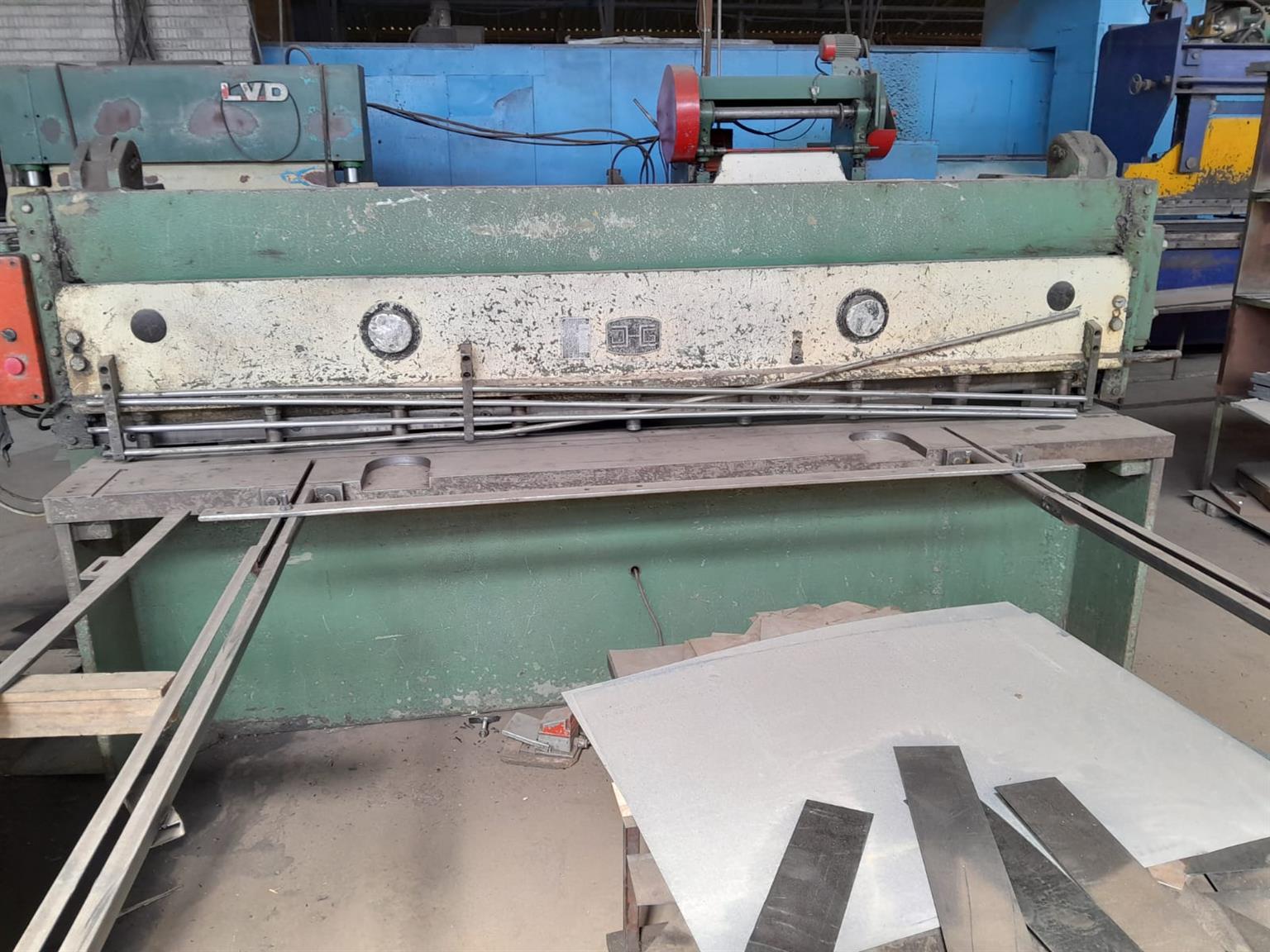Jens Heinsohn guillotine for sale. Production machine doing clean 0.7mm cuts over 2500mm.