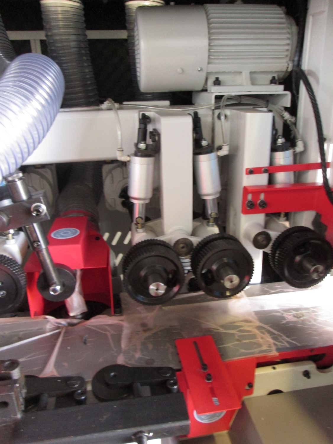 Pneumatic pressure on feed rollers: hold-down air cylinders