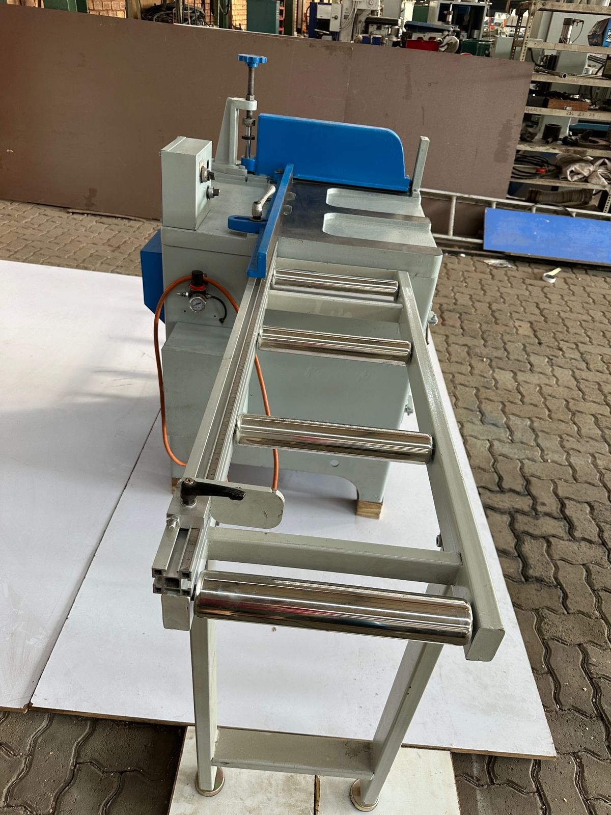 Infeed and outfeed rollers with heavy duty stopper guide.