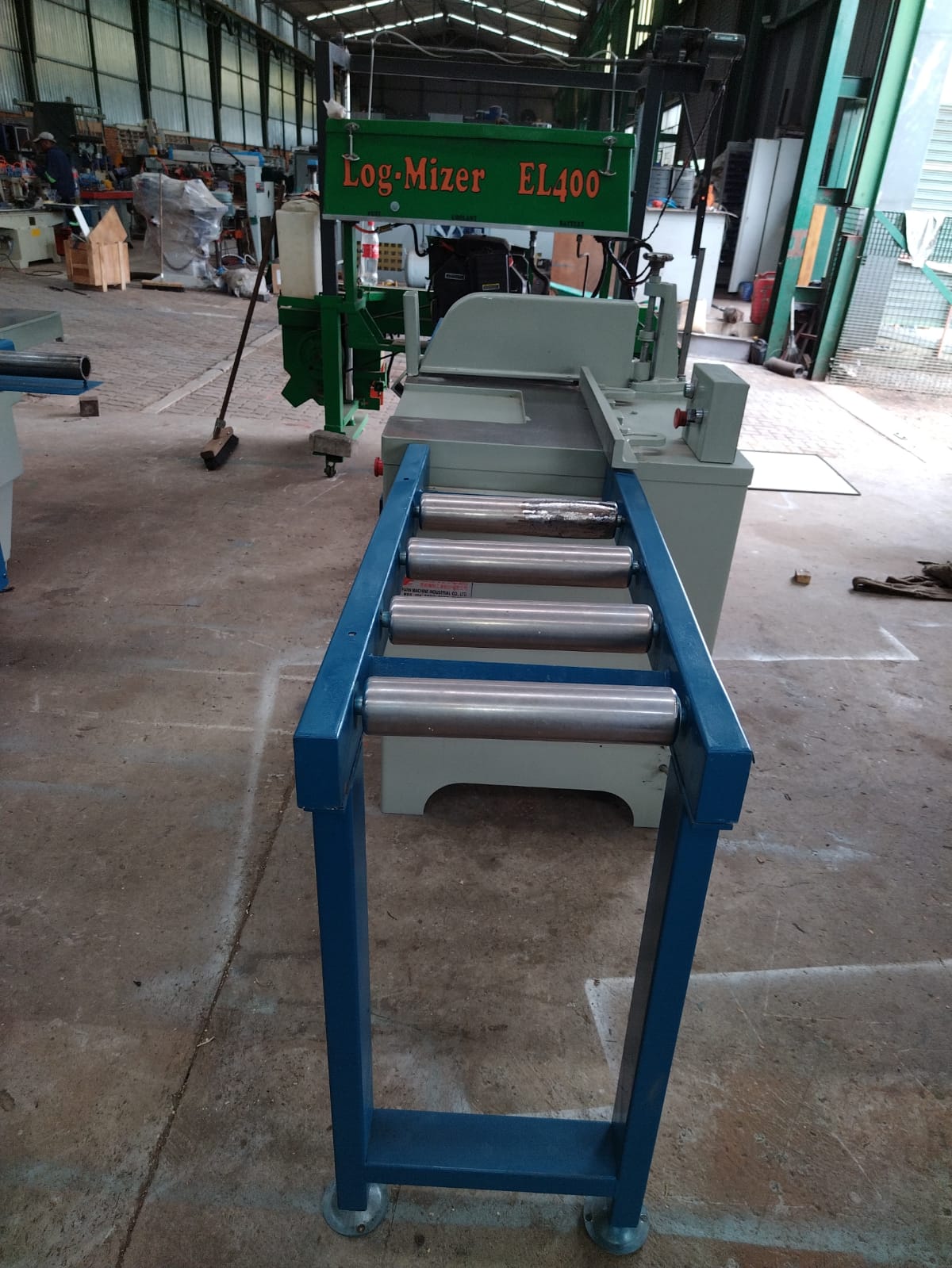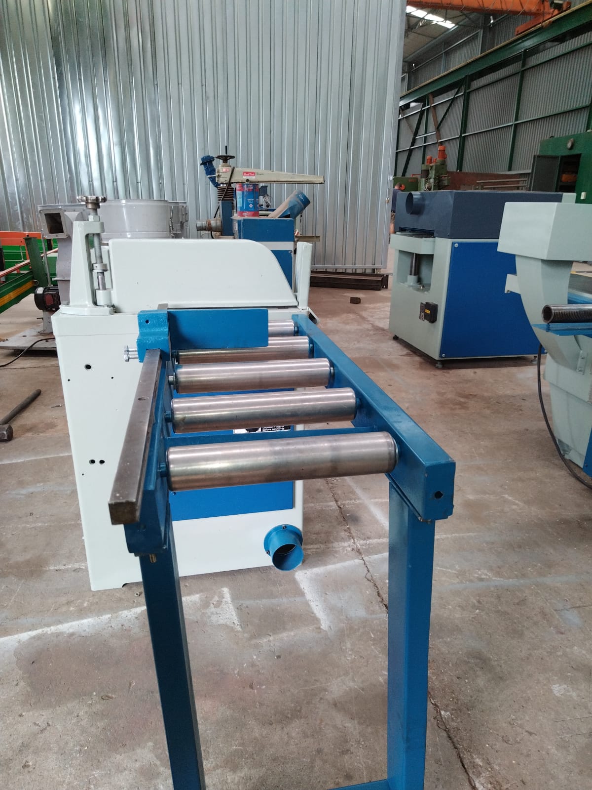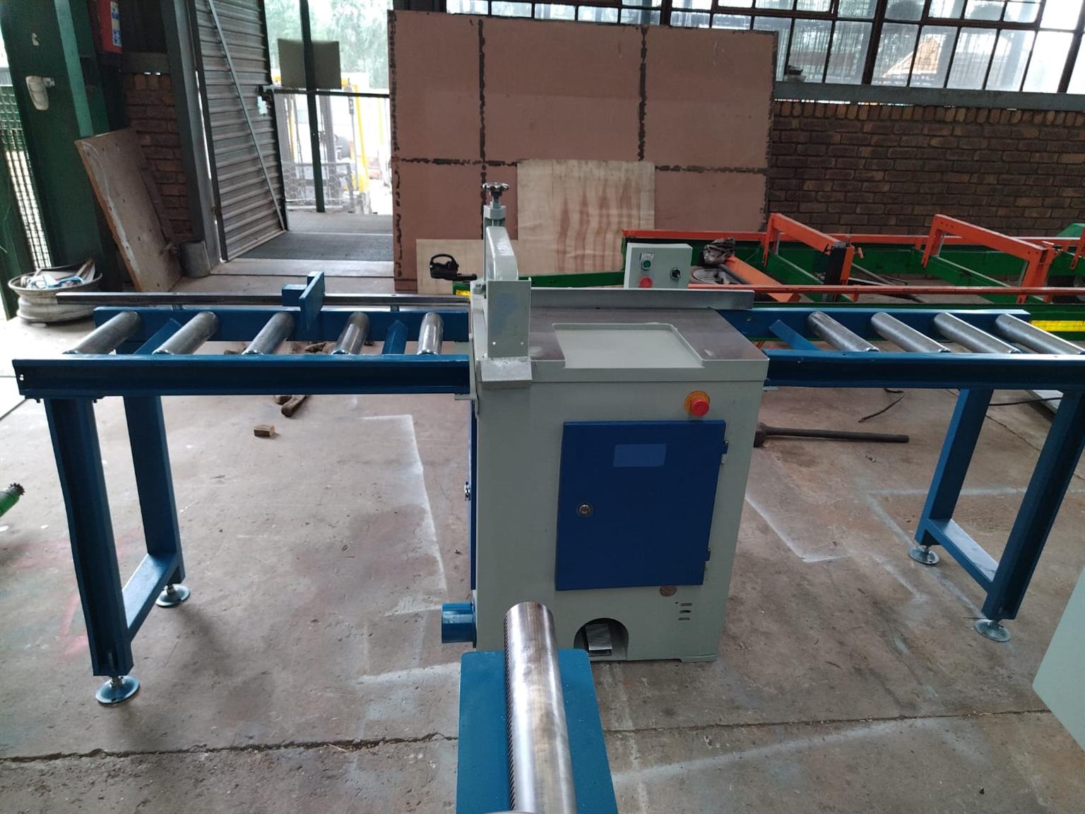 Infeed and outfeed rollers with heavy duty stopper guide.