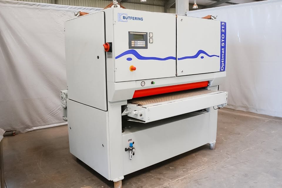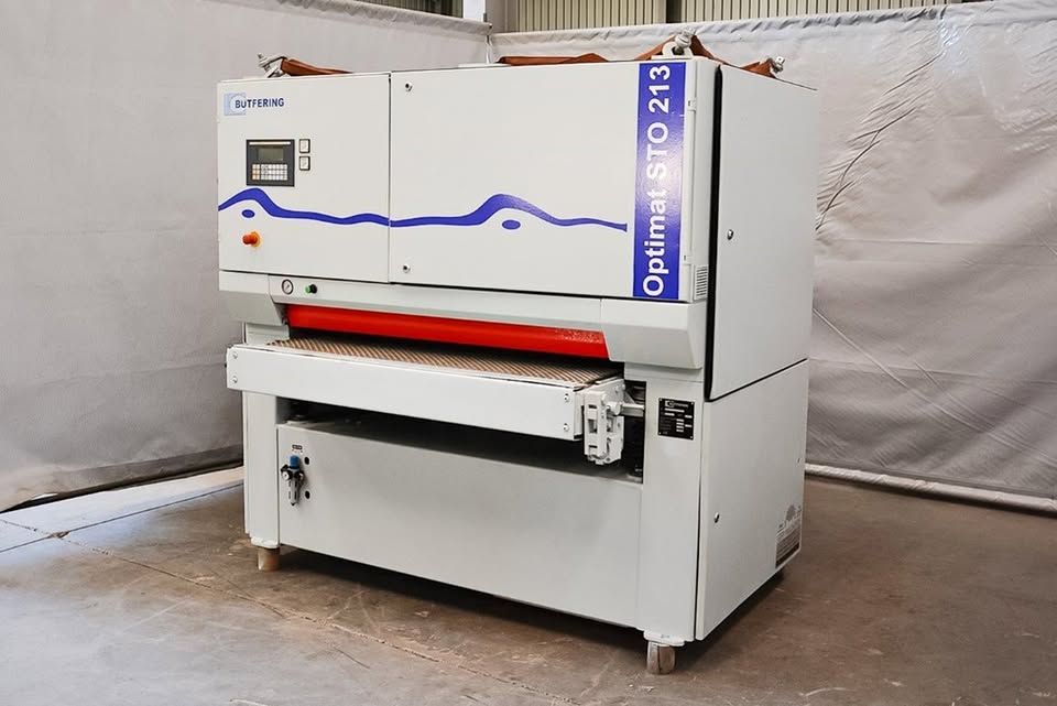 Butfering Optimat STO 213 RE Wide Belt Sander – Germany (Fully Serviced) Powerful double drum wide belt sander from Butfering Germany, tried and trusted brand. Strong motor power of 35kw suitable for industrial calibration sanding of wood With drum and drum and pad configuration; allowing rough sanding on first drum and precision sanding on the second drum and pad roller 1,350 mm (53") Working width Pre-owned machine in mint condition, sold fully checked, serviced ,reconditioned where necessary and with 3 month quality guarantee attached as per T’s and C’s