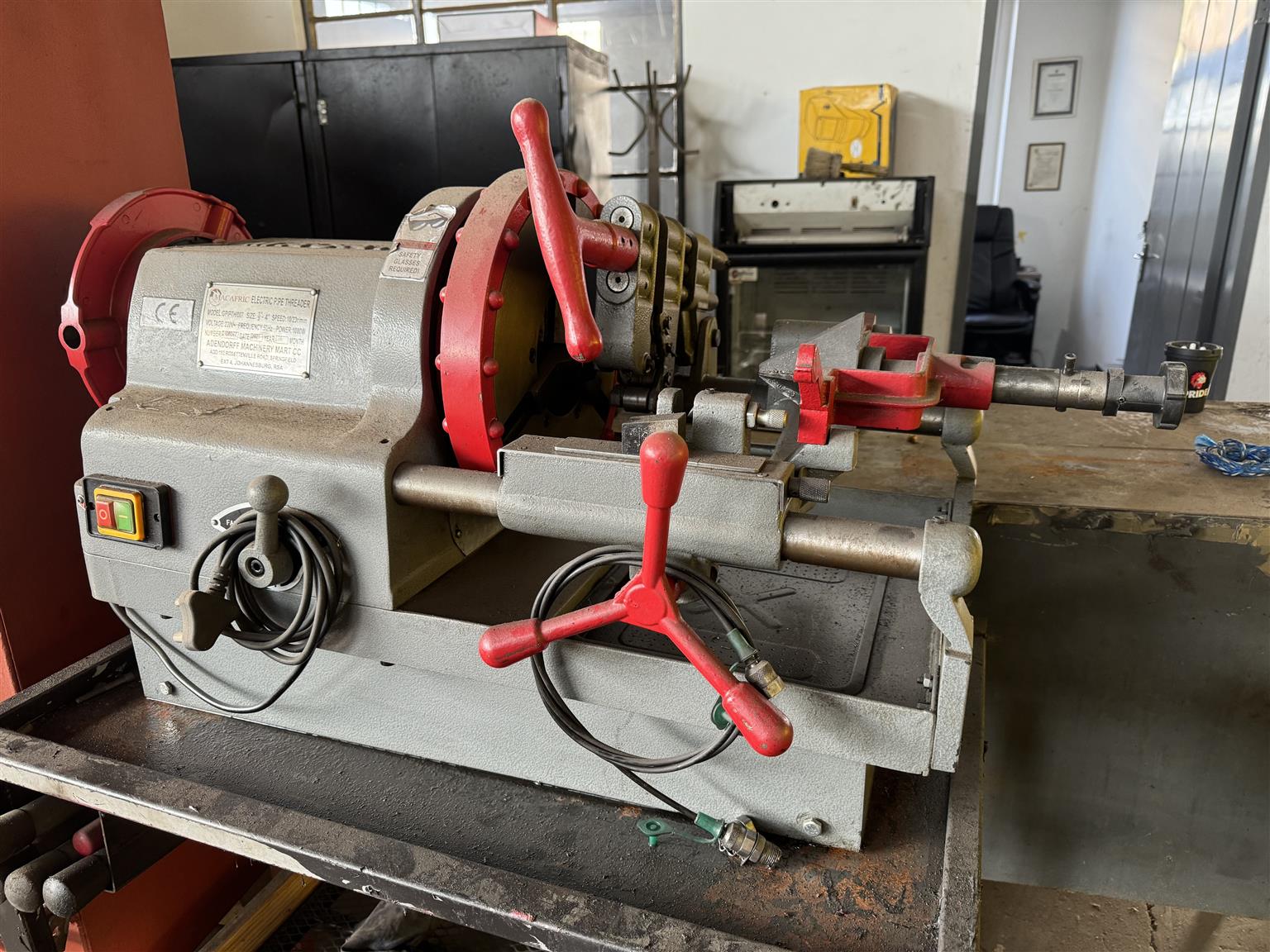 Pipe threading Machine used once, stand, machine extra parts and original legs included
