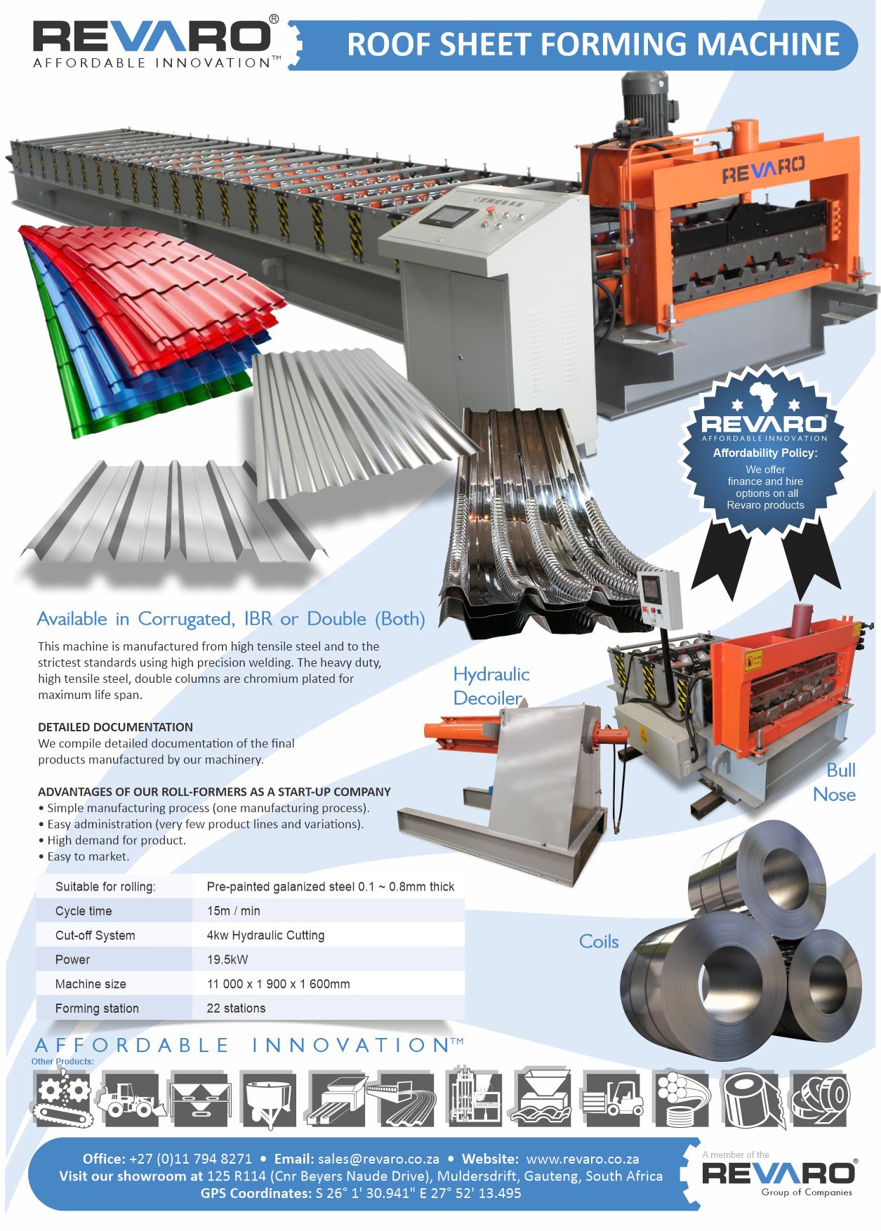 Revaro roll formers in single and double deck Produce IBR and corrugated Plus all stuff to do a roof