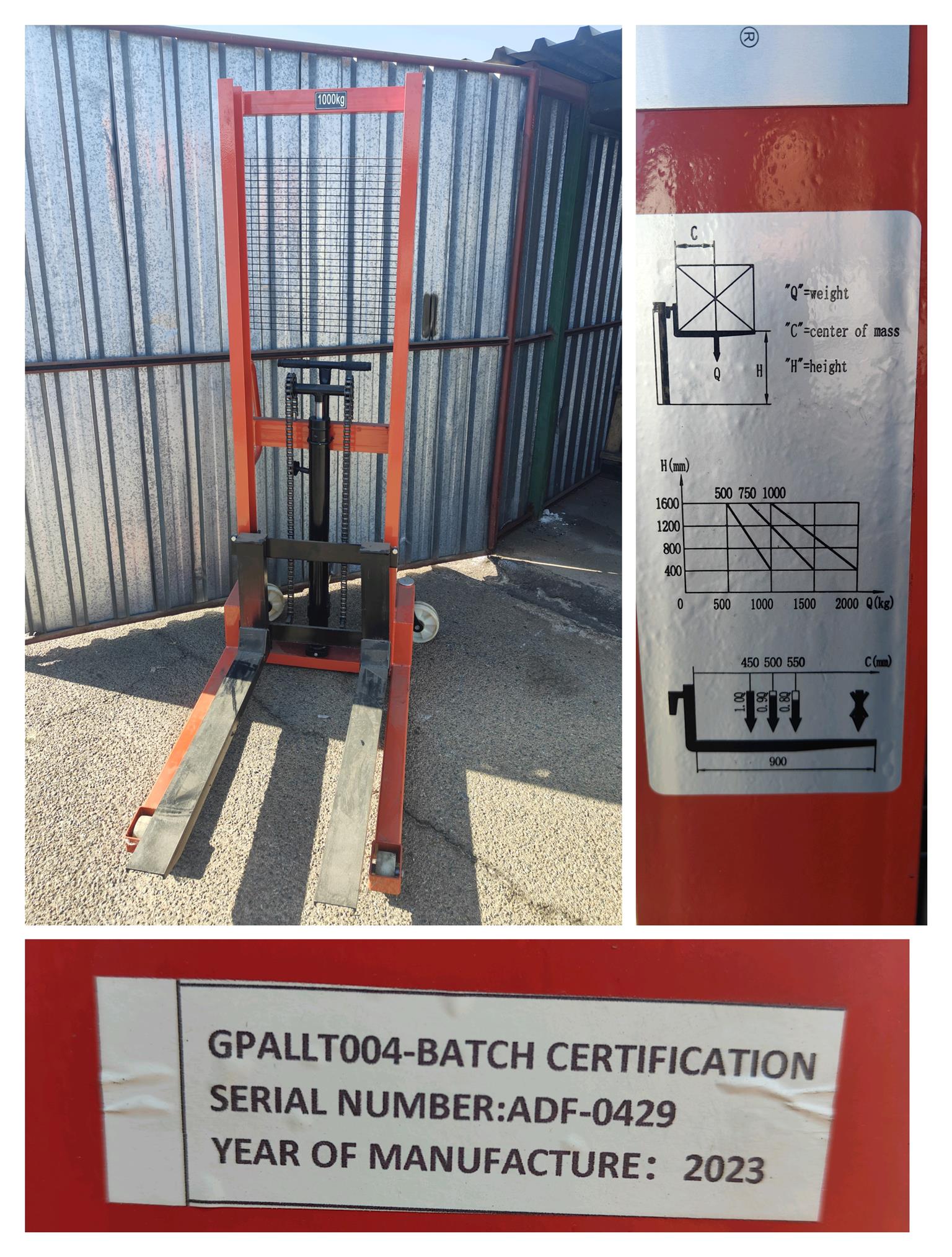 This pallet stacker has never been used. It was bought for a project that never took place and has been in storage.