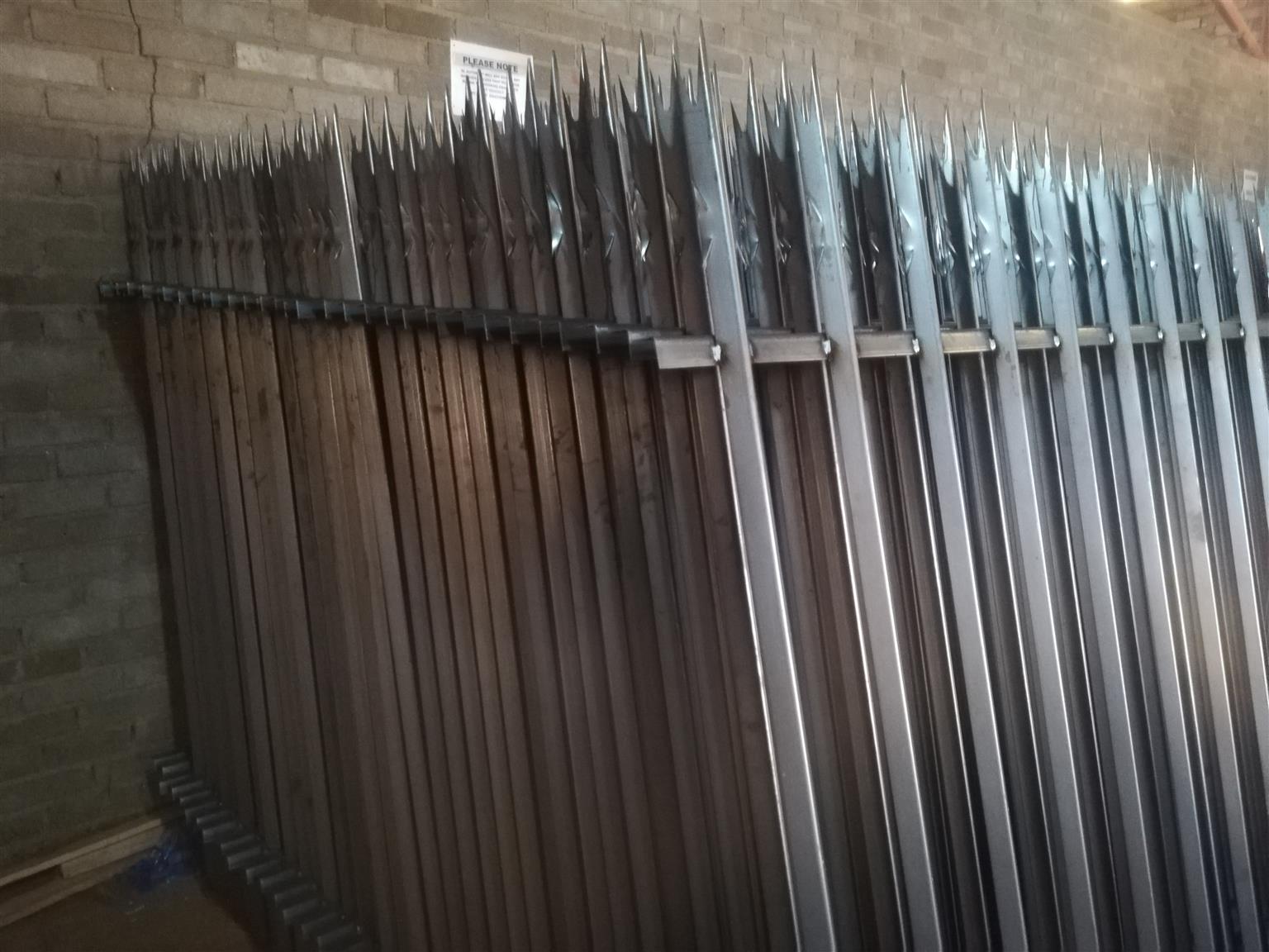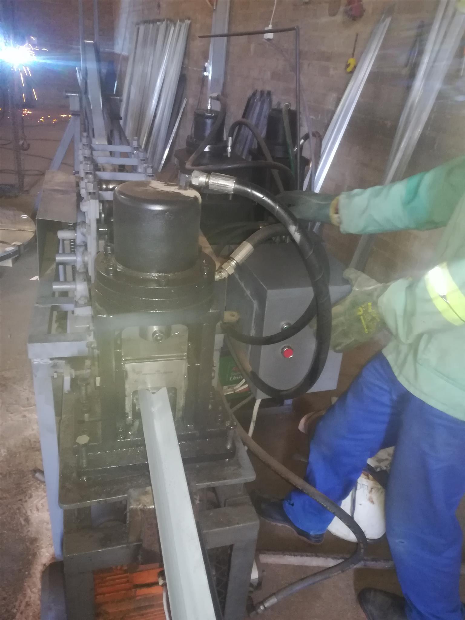 8 roller machine with decoiler, Jig table and limit switch. It can make 3 spikes and 7 spikes palisades up to 3mm thickness