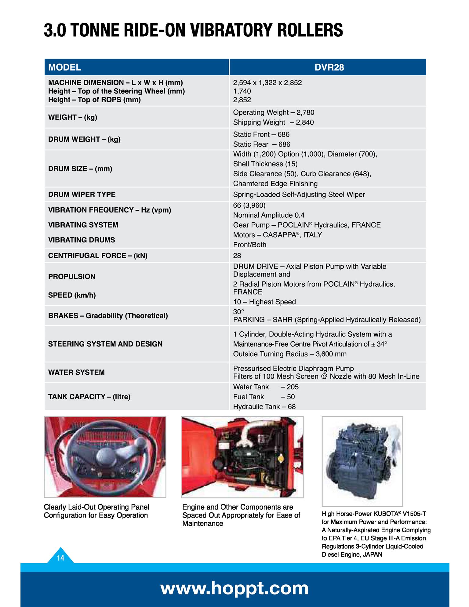 Powered by a 3 cylinder Kubota V1505 diesel engine