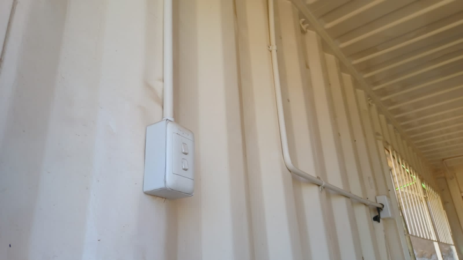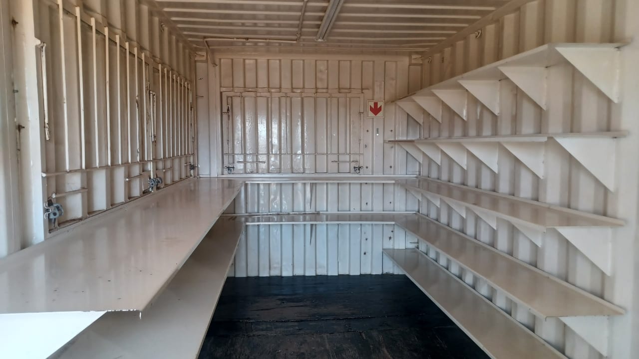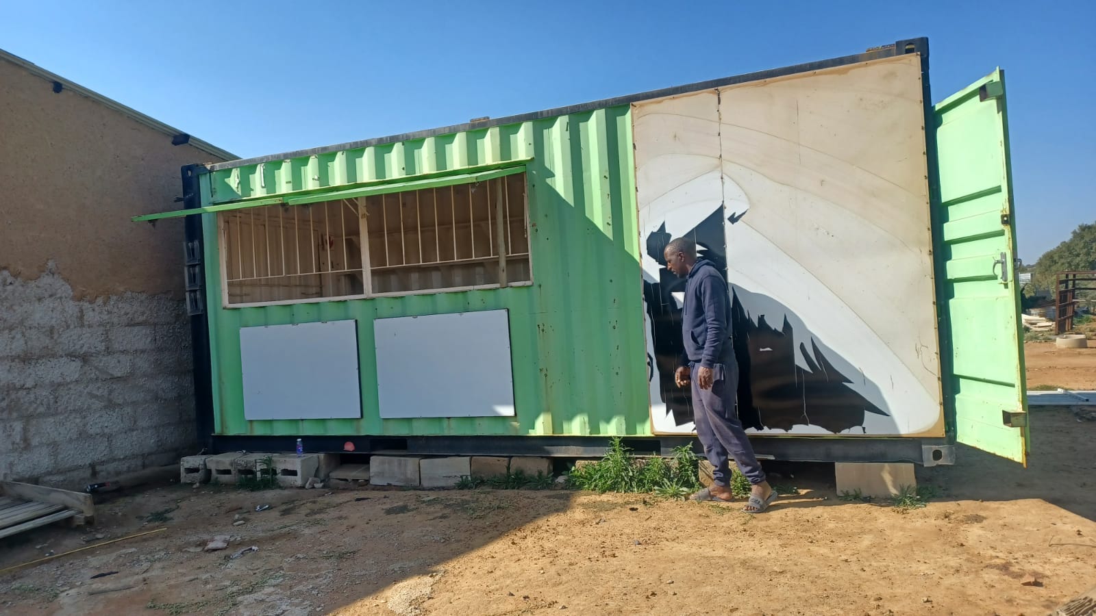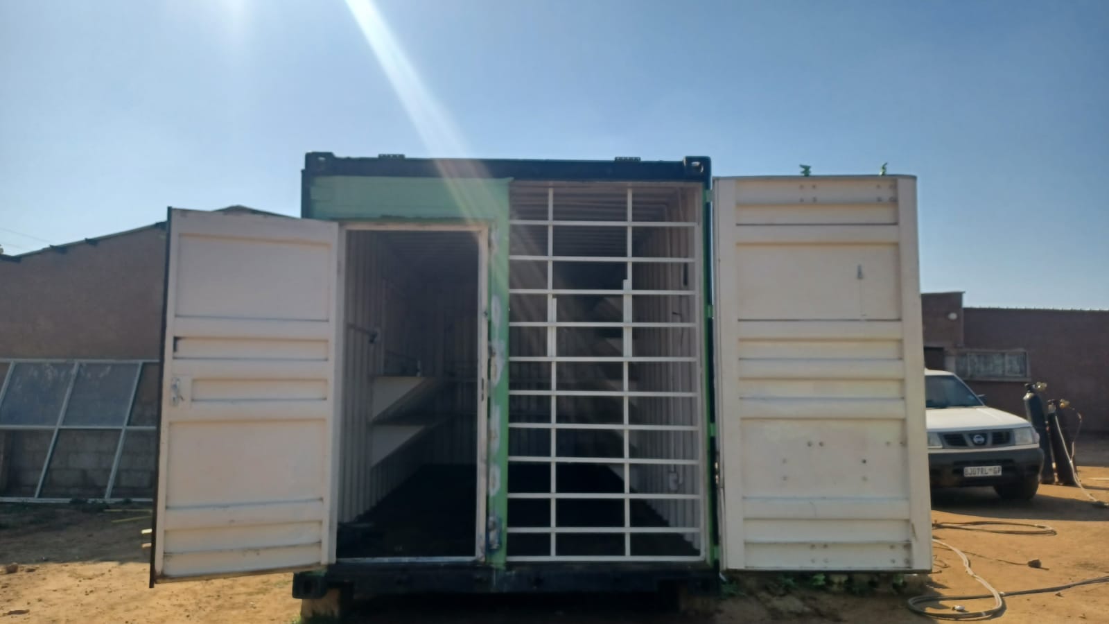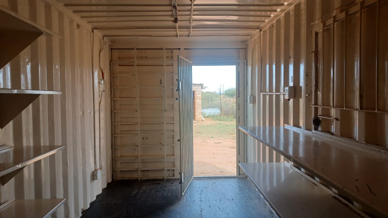 Converted container with electrics. 3 service hatches, security gate and burglars on windows. Lots of shelving. Can be used as tuckshop or spaza.