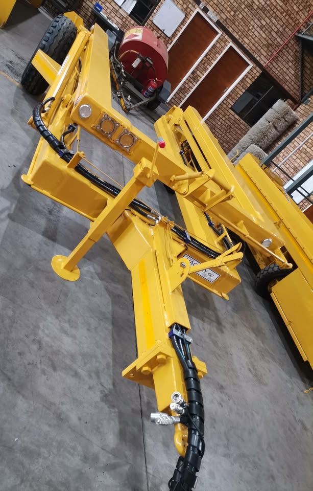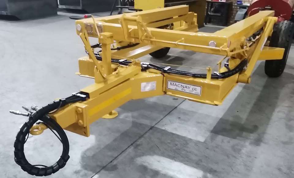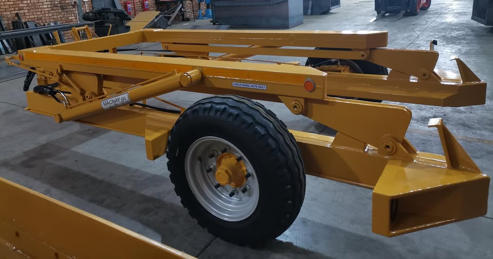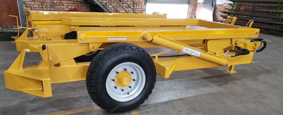 Prices excludes vat and delivery Contact Graeme - Macnay (patented and copyright) 6 tonne telecon trailer, comprising of a robust U-shape main frame, with a similar type top lifting frame, hydraulically operated by two single stage-double acting hydraulic cylinder which are powered from the tractor’s hydraulics via a single stage control valve. - The drawbar will also be an adjustable three-position type with bolt-on pin type hitch - All units are mechanically cleaned, acid washed, primed and painted to our standards in enamel paint in colour of choice - The trailer will be supplied complete with: - Stop/tail light; number plate frame and light; direction indicators; all round reflectors - Hydraulic brakes fitted; height adjustable leg - Natis papers will be supplied but on customers name registration will be for customer himself and payable 6 Ton - Ground clearance 330mm - Tipping height 3885mm - Length 4955mm - Width 2500mm - Weight 1680kg - Payload 6000kg
