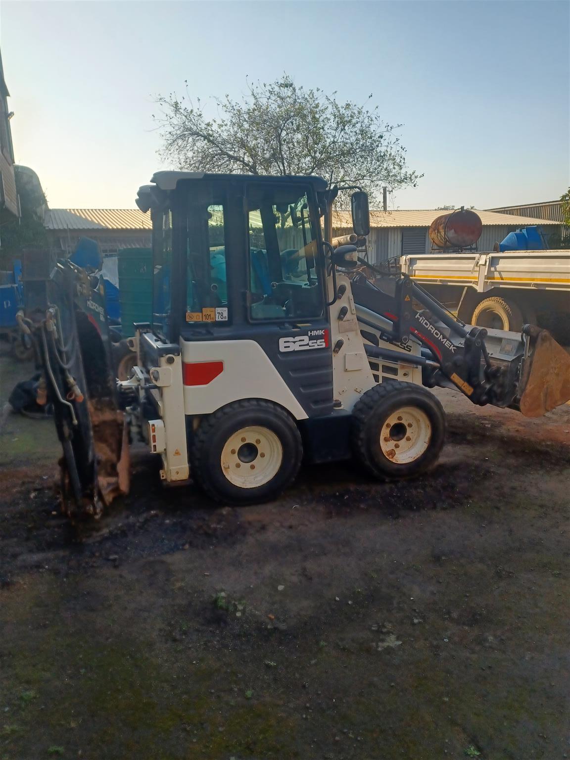 HIDROMEK HMK62SS MINI TLB COMPLETE WITH HYDRAULIC HAMMER PIPING, 4 IN 1 FRONT LOADER BUCKET WITH QUICK COUPLER, STANDARD BACKHOE BUCKET & 3 X 800 KG OPERATING WEIGHT