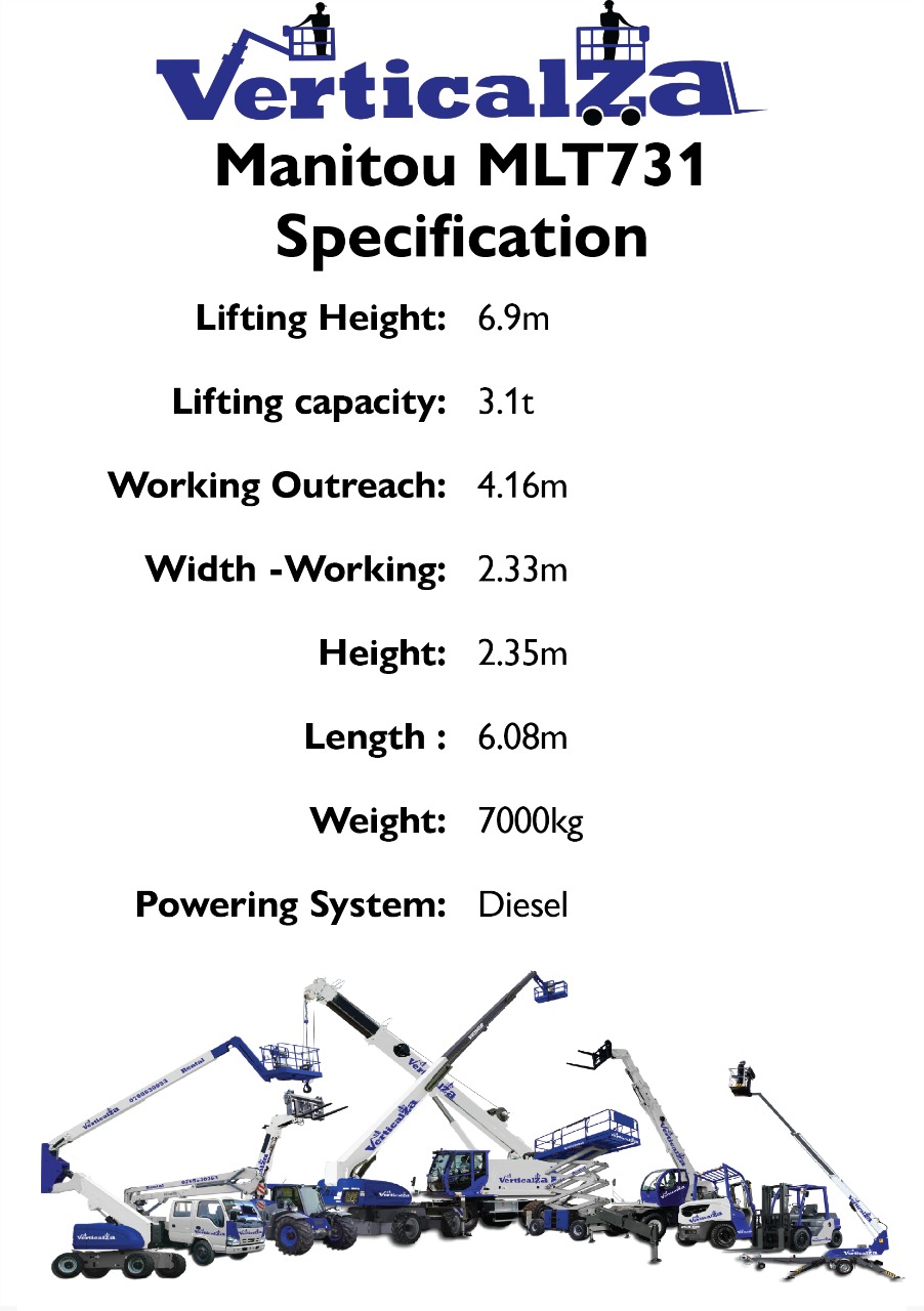 . VerticalZA Lifting Equipment Manitou MLT731, 3ton 7m - TELESCOPIC Handler/ Telehandler