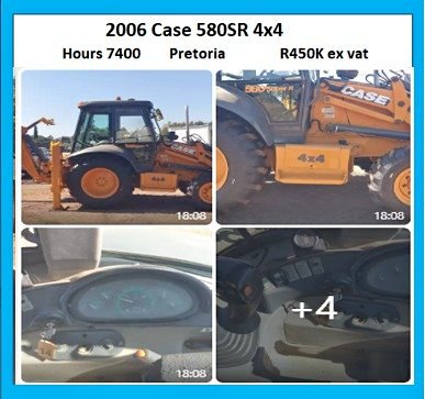 2006 Case 580SR 4x4 Hours 7400 Pretoria We also sell New or used. Mining equipment ,Wash plants DMS & Jig plants from 50tph-1000tph. For Coal , Gold & Diamonds , Chrome. Crushers , Conveyers for Mines Ext . New or used. Excavators, Trucks ,Side lift Trucks , Diggers , Fork lifts , Containers . Earth moving equipment. Pumps, Conveyers & Conveyer belts. All size Tyres for the above,including car tyres. New or used. Generators from 5kva - 2000kva , Transformers . New only Solar kits installed from 3kva-32kva & Back up power kits Installed . Solar Inverters,Lithium Batterys , Solar panels . All Types of Mounting brackets Including Solar Kits car ports And Solar farms Installed. All brands on request . New only Solar Geysers New only. Plug in Trolley Inverters & Power Stations. Phone: ( George WhatsApp Email: view email... Company Registration number: 2017/038176/07 Lidl pty ltd