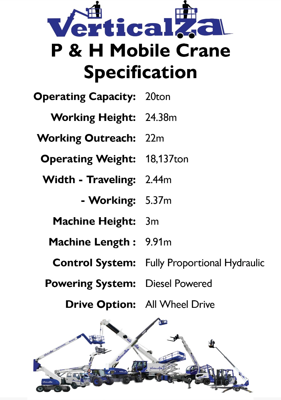 VerticalZA Mobile Rough Terrain Crane P & H Omega – 27m 20 ton
