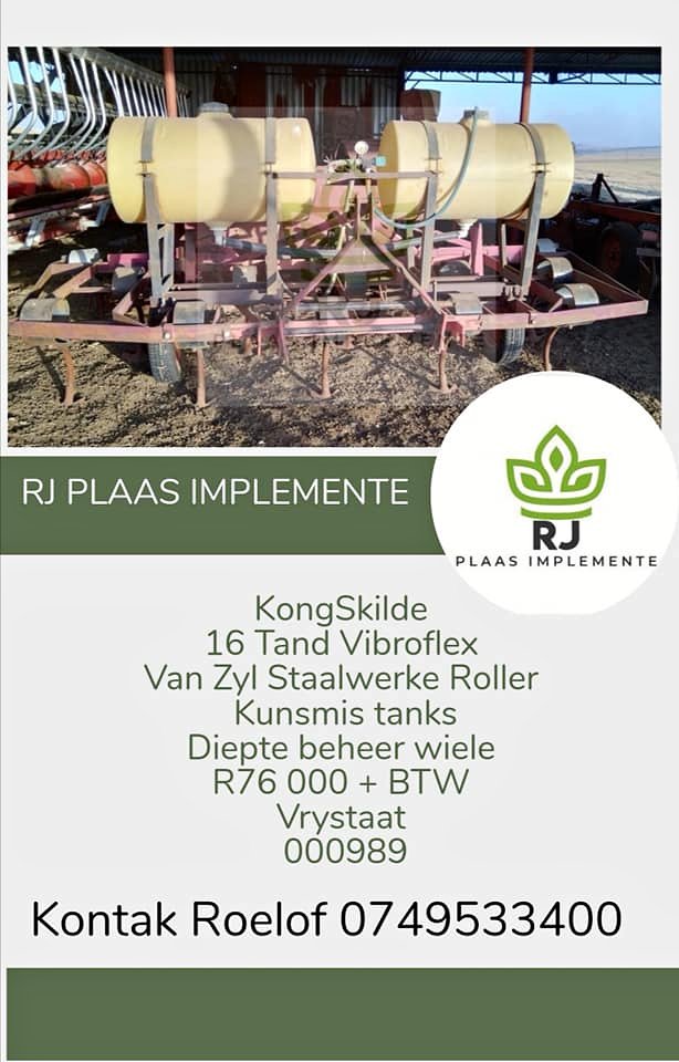 KongSkilde 16 tand Vibroflex met van zyl staalwerke roller en kunsmis tanks. Kontak Roelof