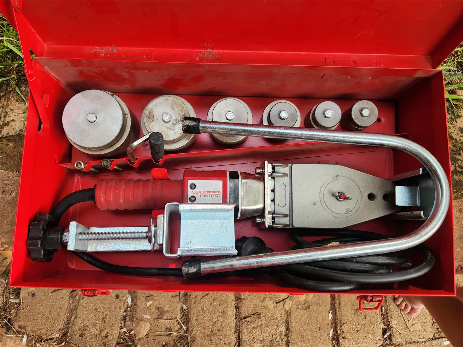 Rothenburger plastic pipe welding machine. Can weld from 15mm up to 63mm pipes and fitting