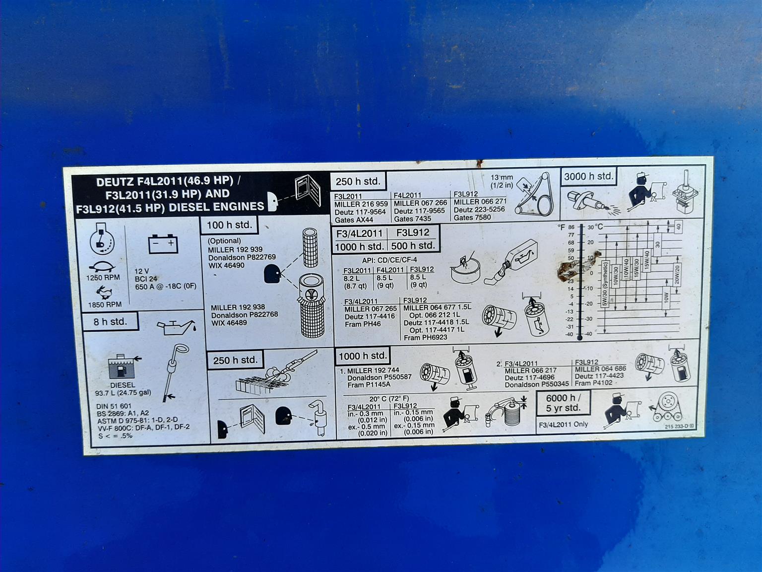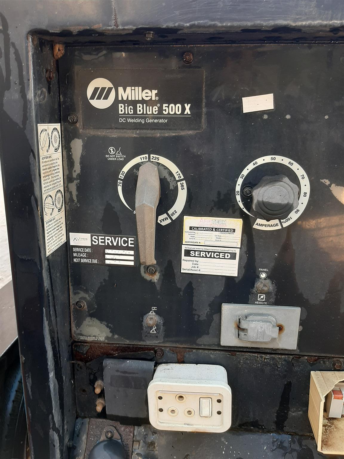 The Miller Big Blue 500 X CC is a diesel engine driven welder. Rated at 400 A at 24 VDC, 100% duty cycle. Low OCV Stick (VRD) reduces the open-circuit. Voltage to 15 V when the power source is not in use. Auxiliary voltage 230 VAC, 12 kVA peak and 10 kVA continuous output, 50 Hz.