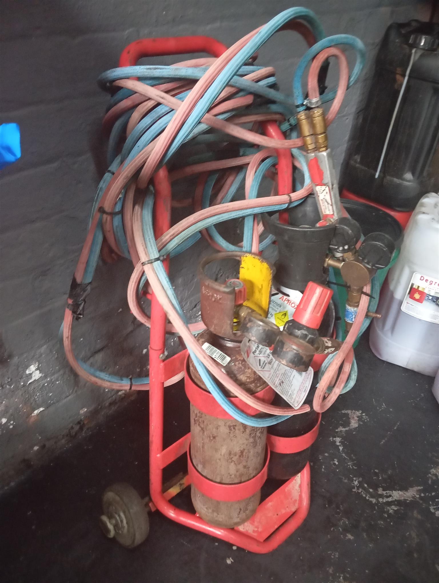 Second-hand Acetylene and oxygen cylinder set for sale. R10 000 slightly neg. Still in good condition.