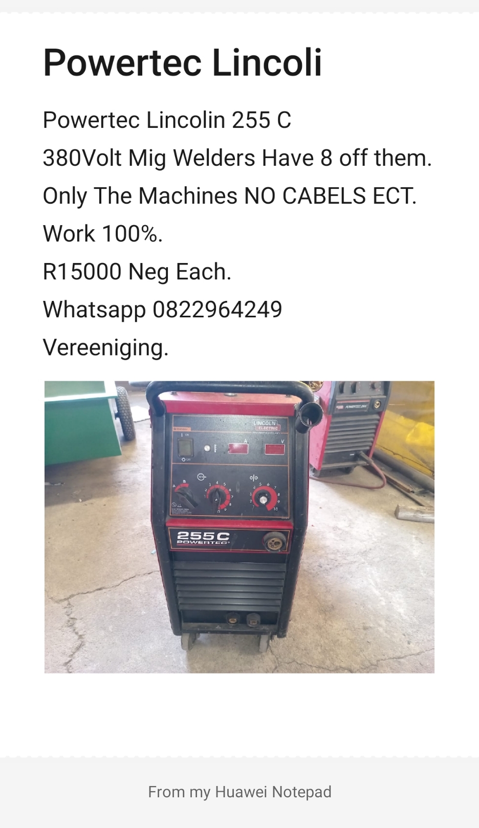 380Volt Mig Welders Have 8 off them. Only The Machines NO CABELS ECT. Work 100%.