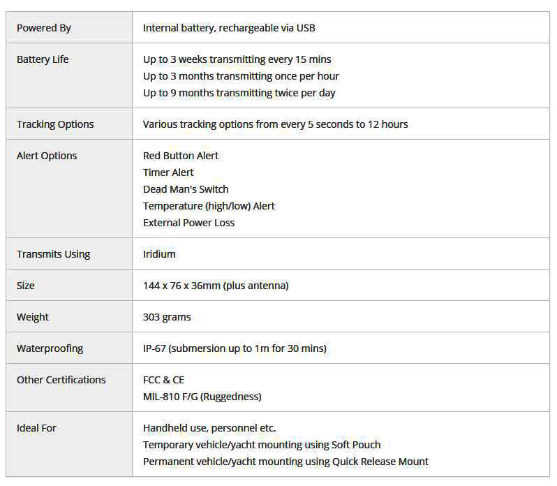 Rugged hand held GPS tracker and communicator. Waterproof and shock protected. Works anywhere on earth. Sends position reports at user selected intervals plus two way SMS communication to any phone. Bluetooth enabled for easy text entry. Very long battery life. No annual subscription required.