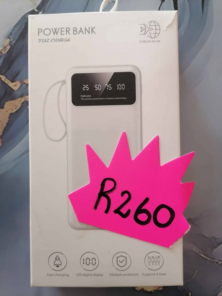WizeSolar product offering : Hoselect 20000mah power bank(new) LED display for easy monitoring 4 x charging cables 2 x recharging ports to charge power bank when flat 2 x USB charging ports, if you want to use your own charging cable Ideal for traveling, camping, emergency back up power for your cellphone Contact or what's app me on Please note serious Intrested parties welcome only