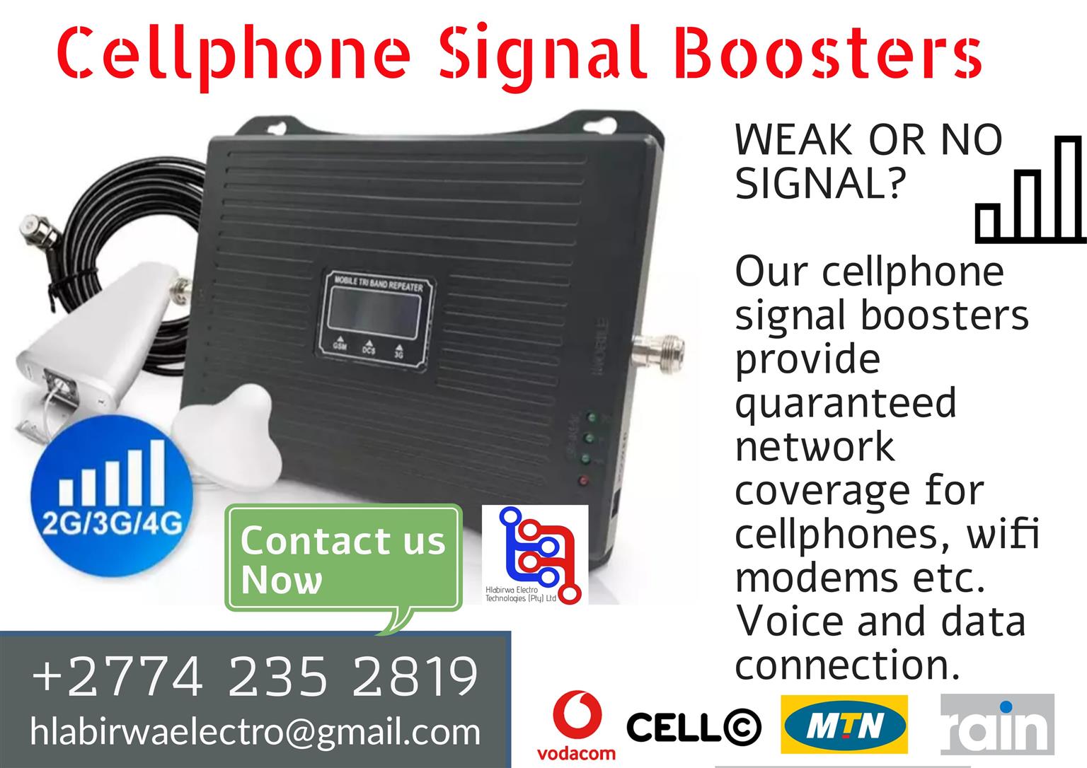 Weak or No cellular network signal? we supply and install cellular signal boosters/repeaters. for all networks in the South Africa .Support Voice and data connection (2G,3G and 4G LTE ).quaranteed network coverage .contact us today 074 235 2819view more .