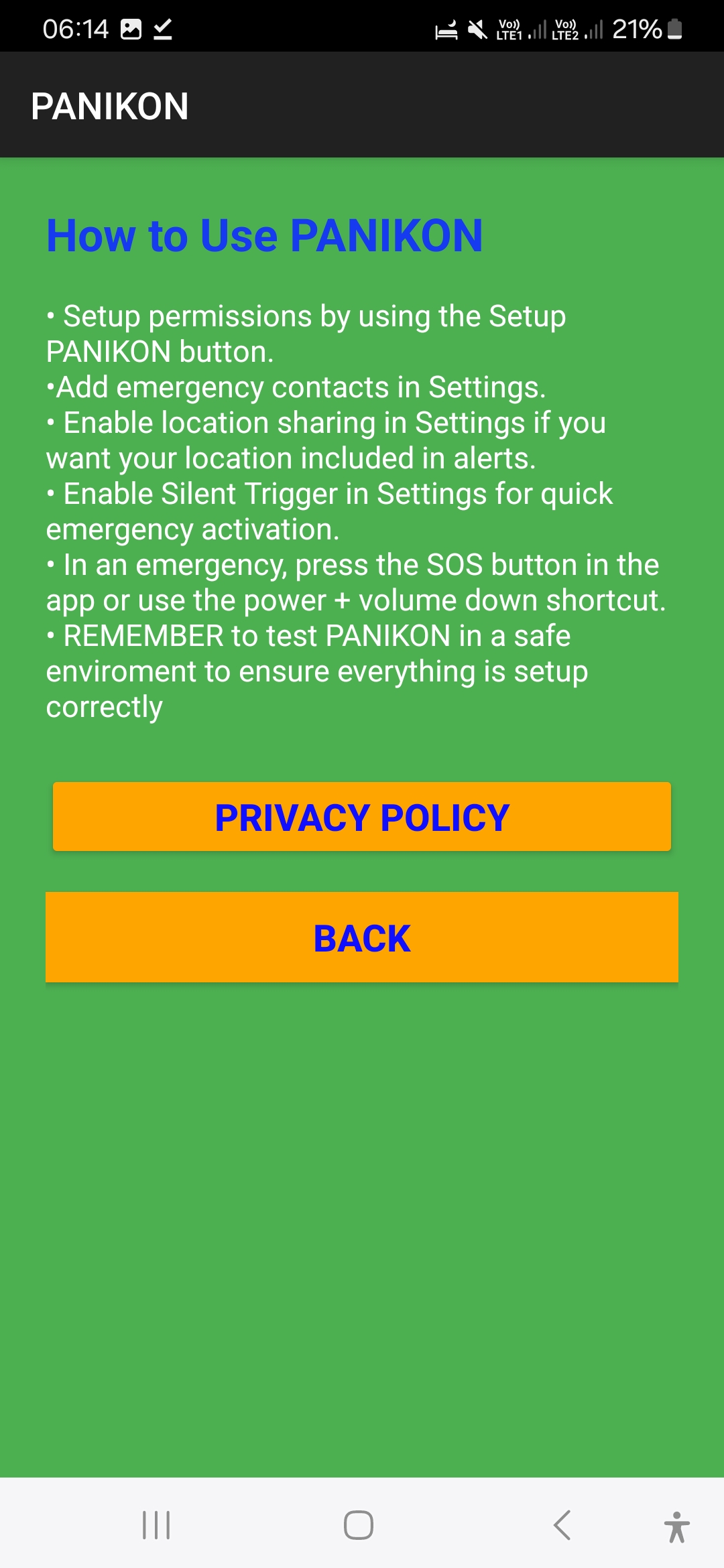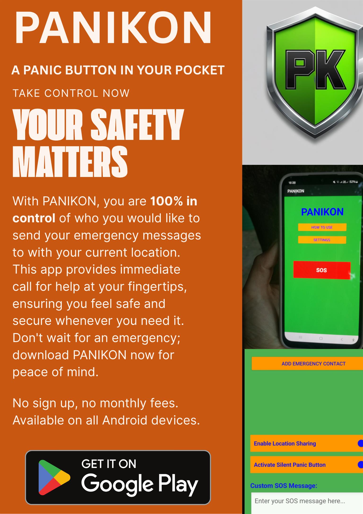 PANIKON is a mobile application that transforms a smartphone into a panic button, designed to enhance personal safety by quickly alerting trusted contacts during emergencies. It focuses on user privacy, storing no data and operating solely on the user's device.