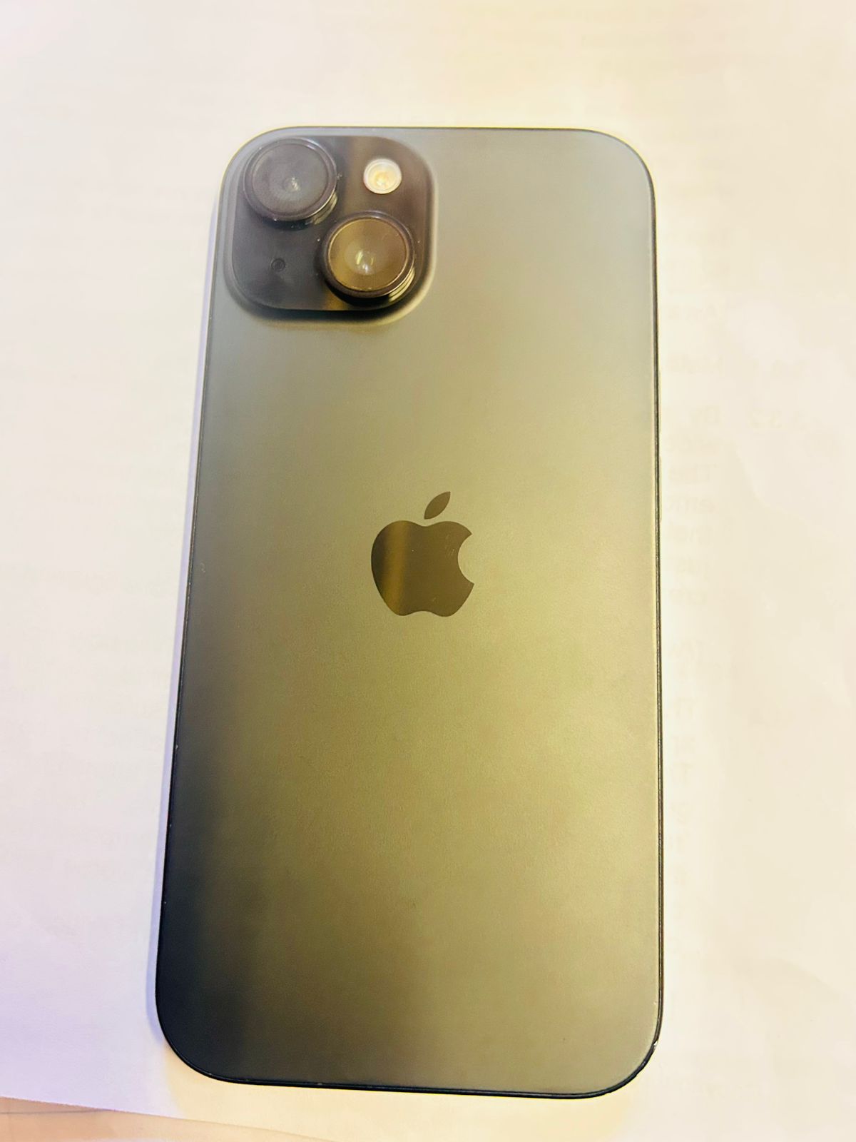 iPhone 15 Black 128gb just 4 months old. Minor scratches on the edges. 100% battery, with warranty that expires in May 2026. Functions perfectly.